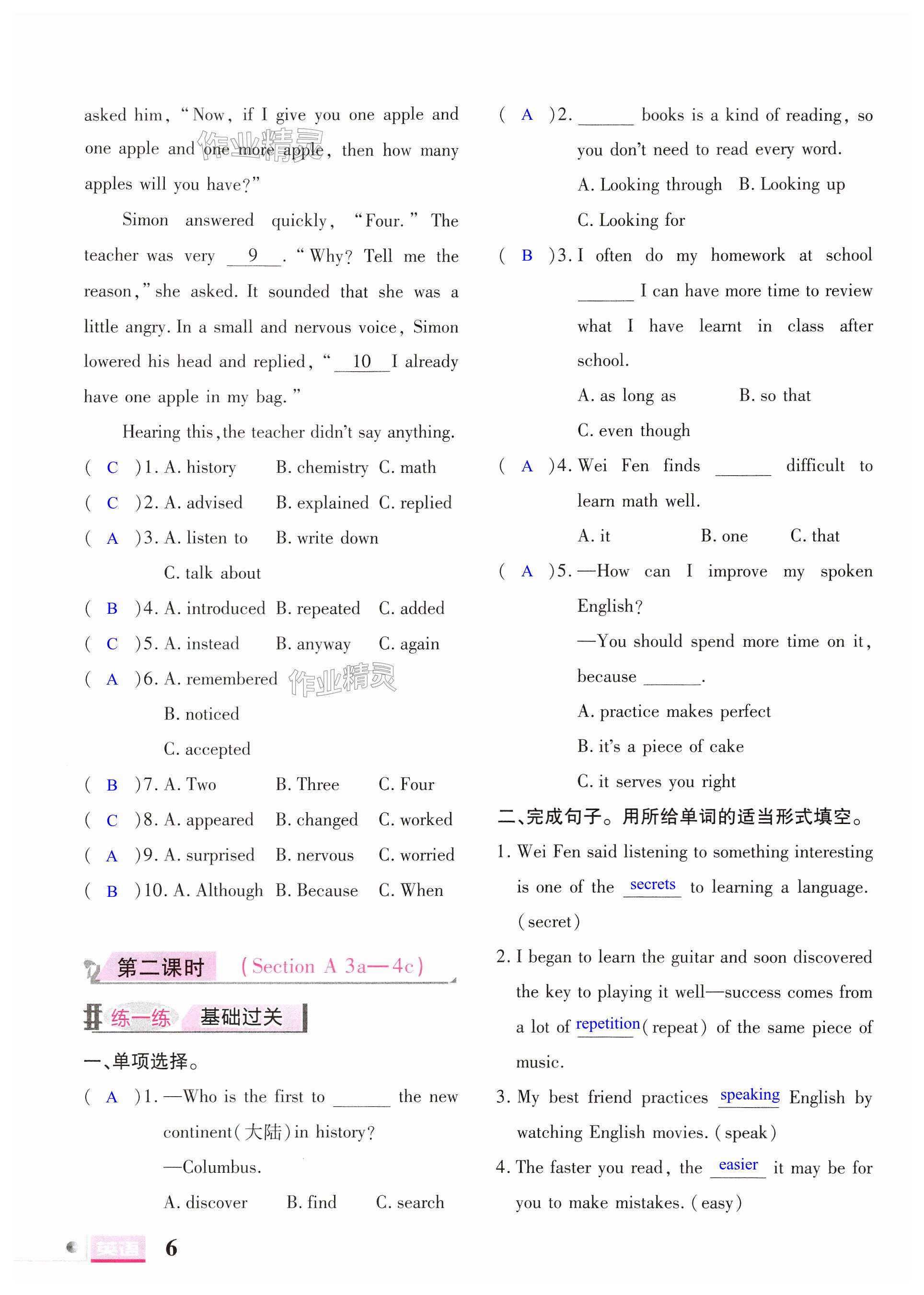 注:目前有些书本章节名称可能整理的还不是很完善,但都是按照顺序排列的,请同学们按照顺序仔细查找。练习册 2024年文科爱好者九年级英语全一册人教版 答案主要是用来给同学们做完题方便对答案用的,请勿直接抄袭。