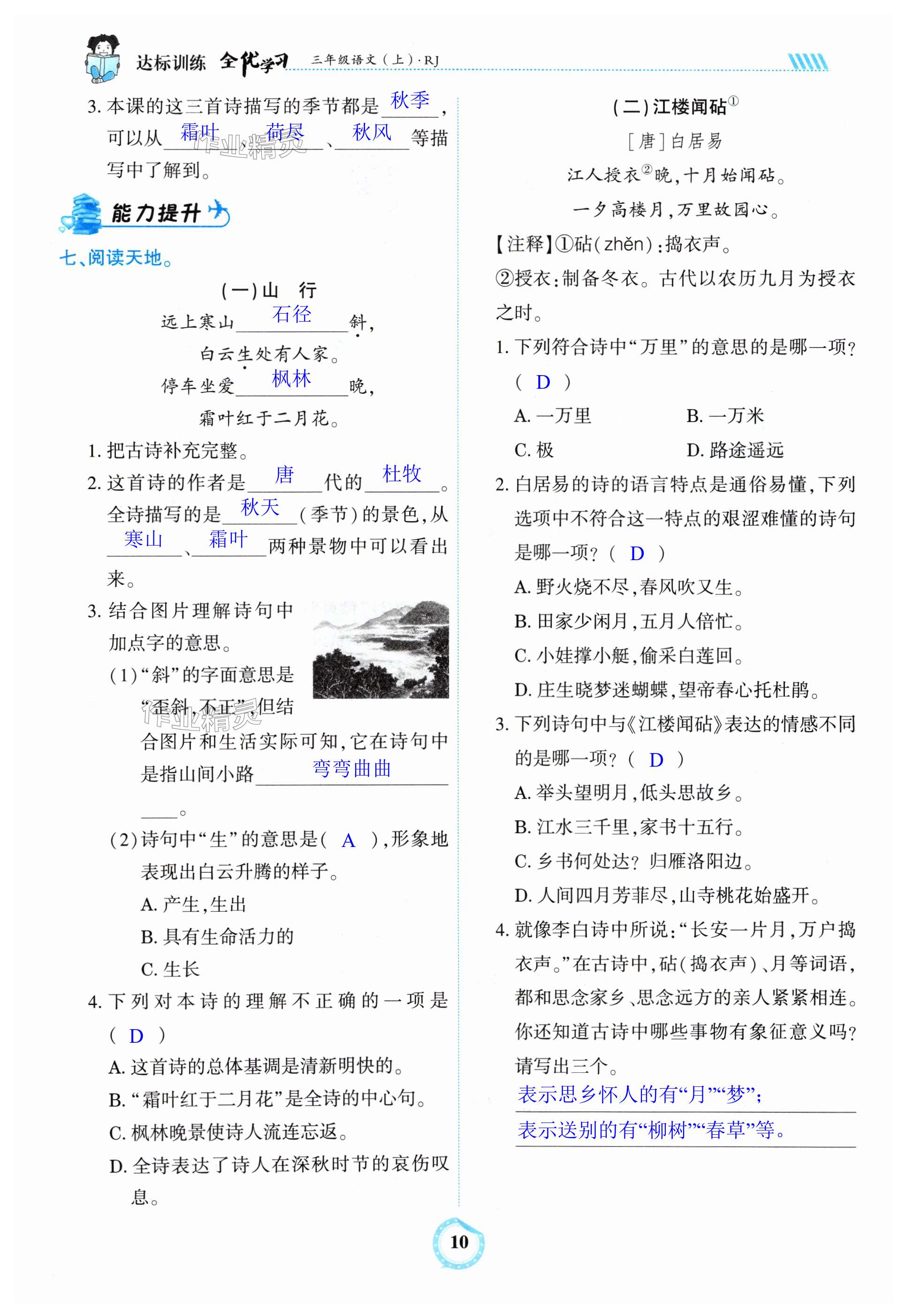 注:目前有些书本章节名称可能整理的还不是很完善,但都是按照顺序排列的,请同学们按照顺序仔细查找。练习册 2024年全优学习达标训练三年级语文上册人教版 答案主要是用来给同学们做完题方便对答案用的,请勿直接抄袭。