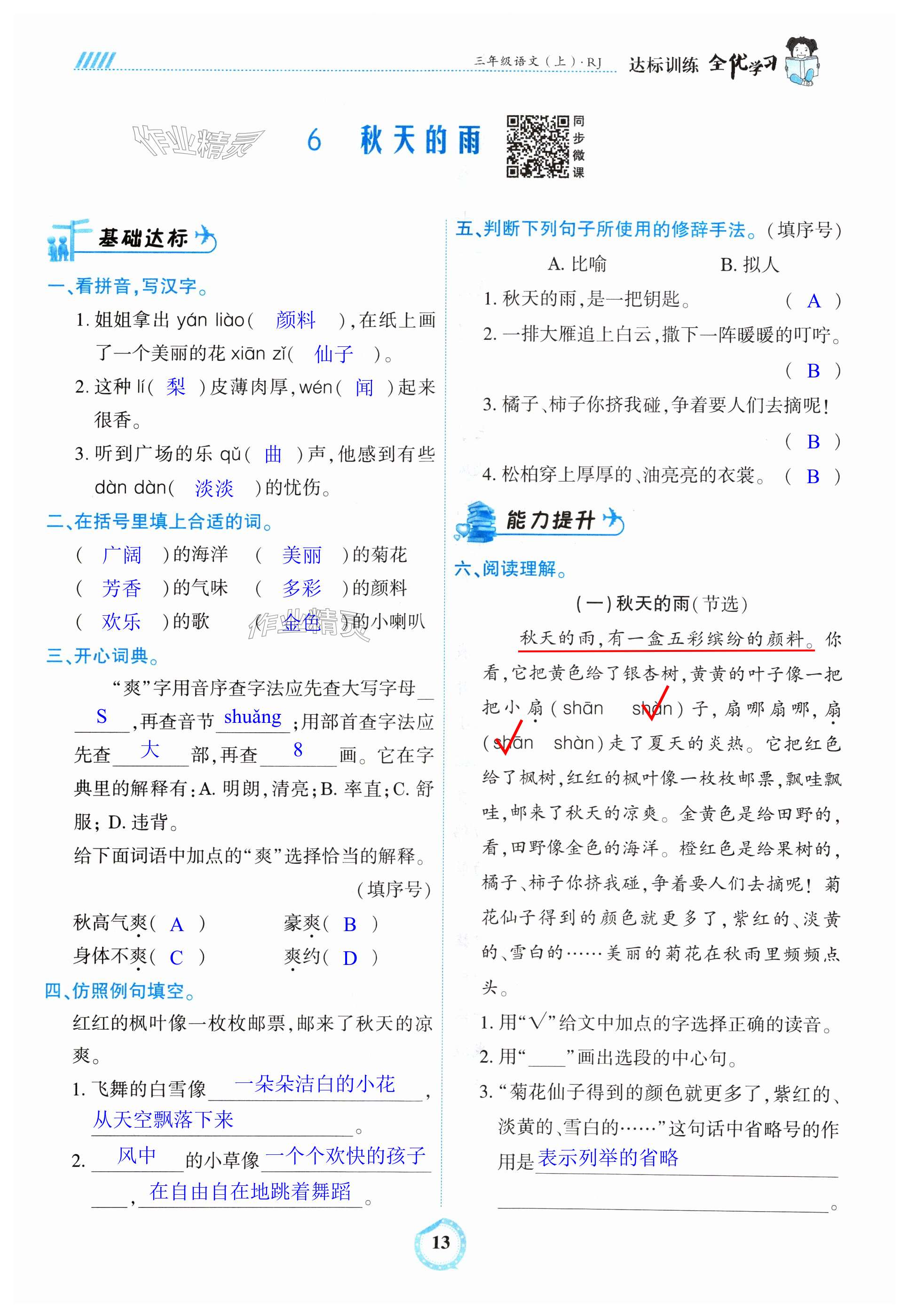注:目前有些书本章节名称可能整理的还不是很完善,但都是按照顺序排列的,请同学们按照顺序仔细查找。练习册 2024年全优学习达标训练三年级语文上册人教版 答案主要是用来给同学们做完题方便对答案用的,请勿直接抄袭。
