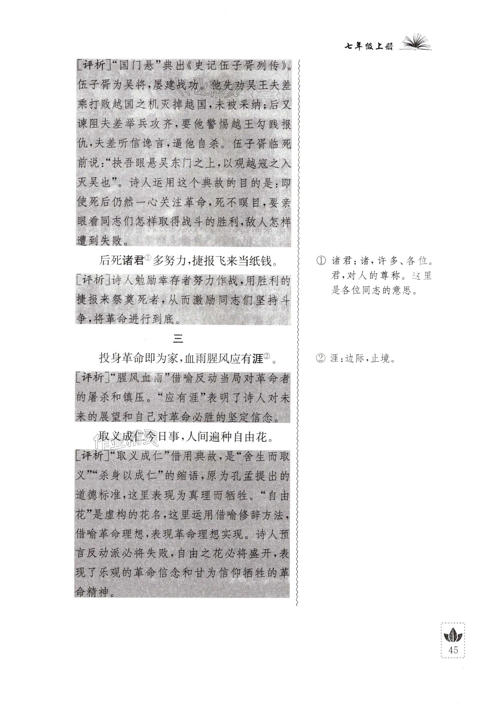 注:目前有些书本章节名称可能整理的还不是很完善,但都是按照顺序排列的,请同学们按照顺序仔细查找。练习册 2024年初中文言文全解江苏人民出版社七年级上册 答案主要是用来给同学们做完题方便对答案用的,请勿直接抄袭。
