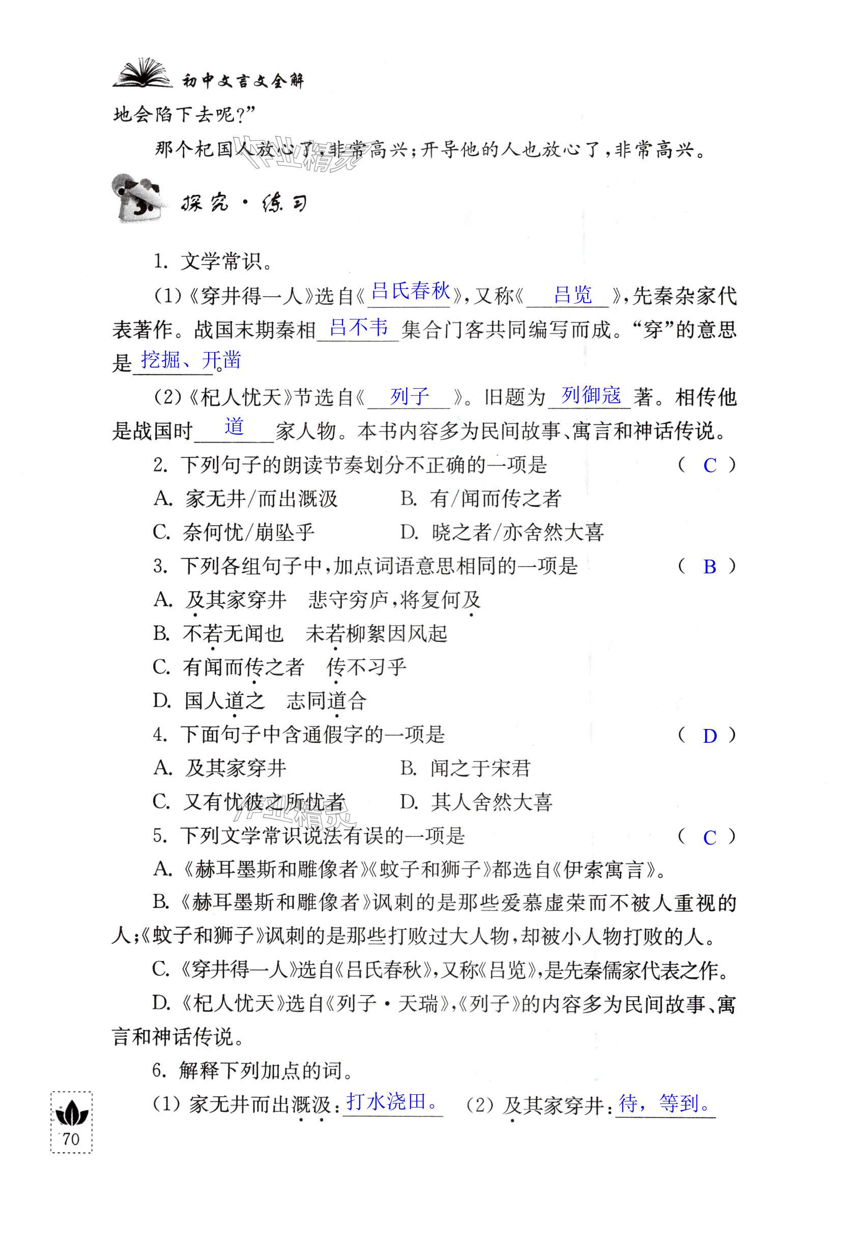 注:目前有些书本章节名称可能整理的还不是很完善,但都是按照顺序排列的,请同学们按照顺序仔细查找。练习册 2024年初中文言文全解江苏人民出版社七年级上册 答案主要是用来给同学们做完题方便对答案用的,请勿直接抄袭。