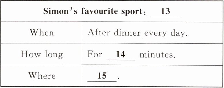 听第二段对话,回答第 13~15 小题,完成信息记录表。