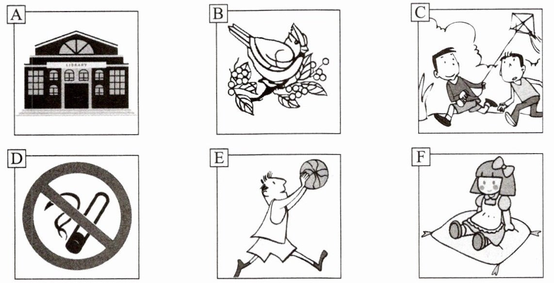 一、听句子,按照听到的顺序选择正确的图片。每个句子读两遍。(其中有一项多余)
