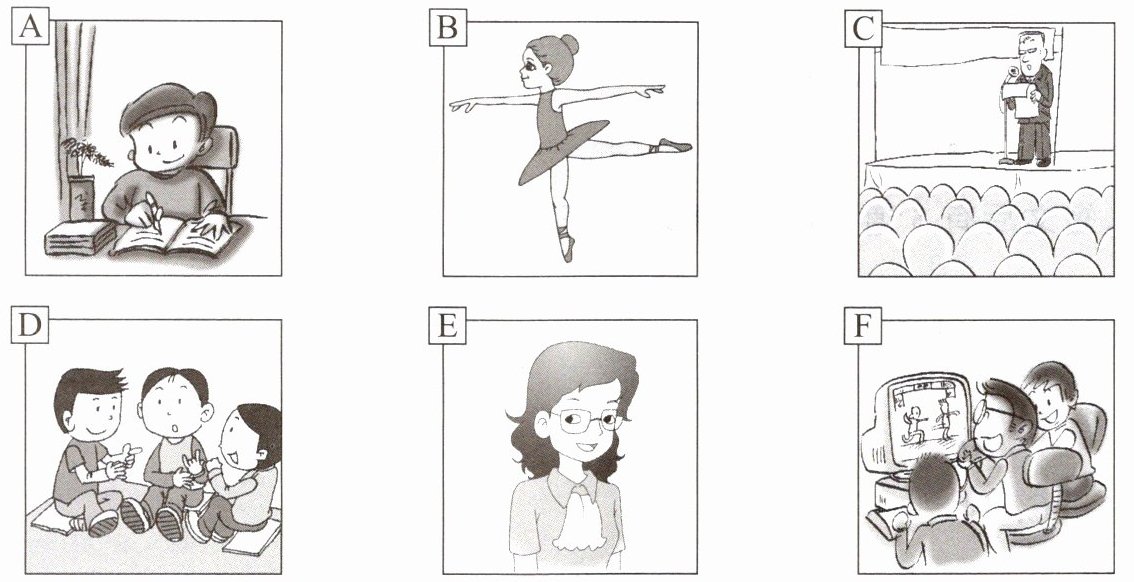 一、听句子,按照听到的顺序选择正确的图片。每个句子读两遍。(其中有一项多余)