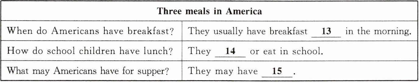 | When do Americans have breakfast? | They usually have breakfast 13 in the morning. |