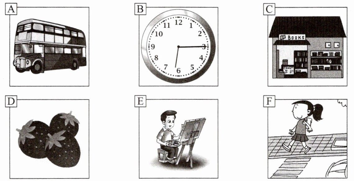 一、听句子,按照听到的顺序选择正确的图片。每个句子读两遍。(其中有一项多余)