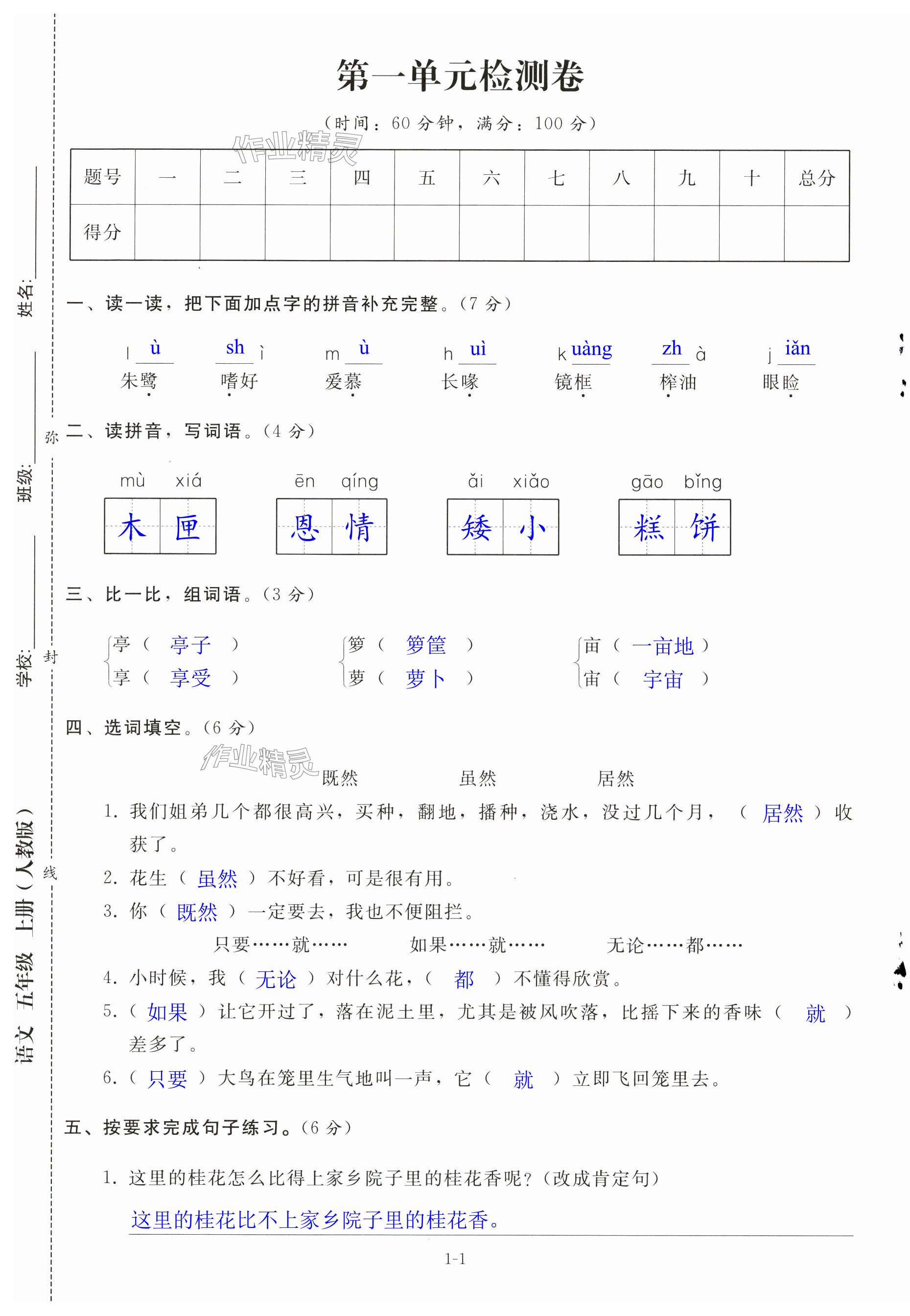 注:目前有些书本章节名称可能整理的还不是很完善,但都是按照顺序排列的,请同学们按照顺序仔细查找。练习册 2024年同步轻松练习五年级语文上册人教版贵州专版 答案主要是用来给同学们做完题方便对答案用的,请勿直接抄袭。