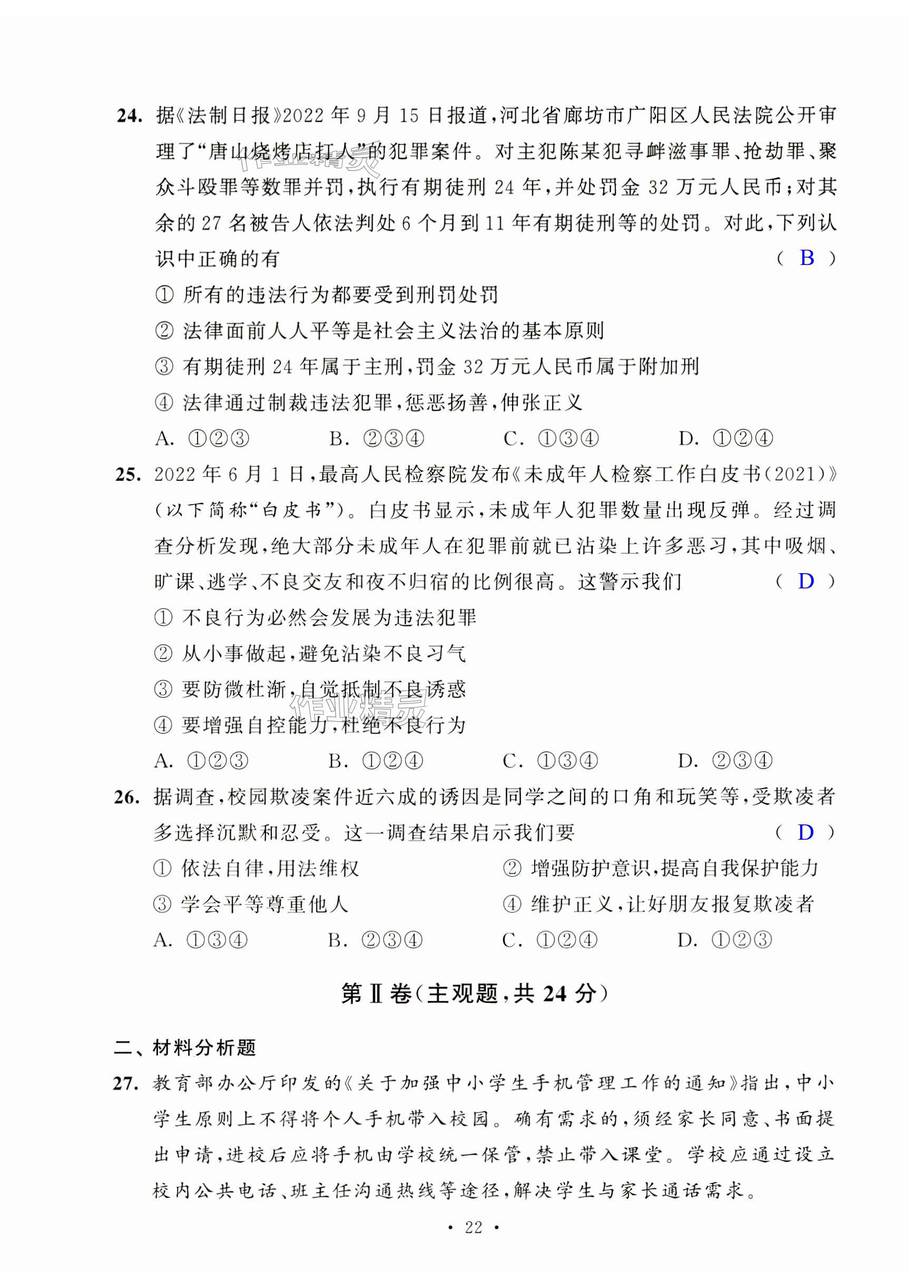 注:目前有些书本章节名称可能整理的还不是很完善,但都是按照顺序排列的,请同学们按照顺序仔细查找。练习册 2024年阳光互动绿色成长空间八年级道德与法治上册人教版提优版 答案主要是用来给同学们做完题方便对答案用的,请勿直接抄袭。