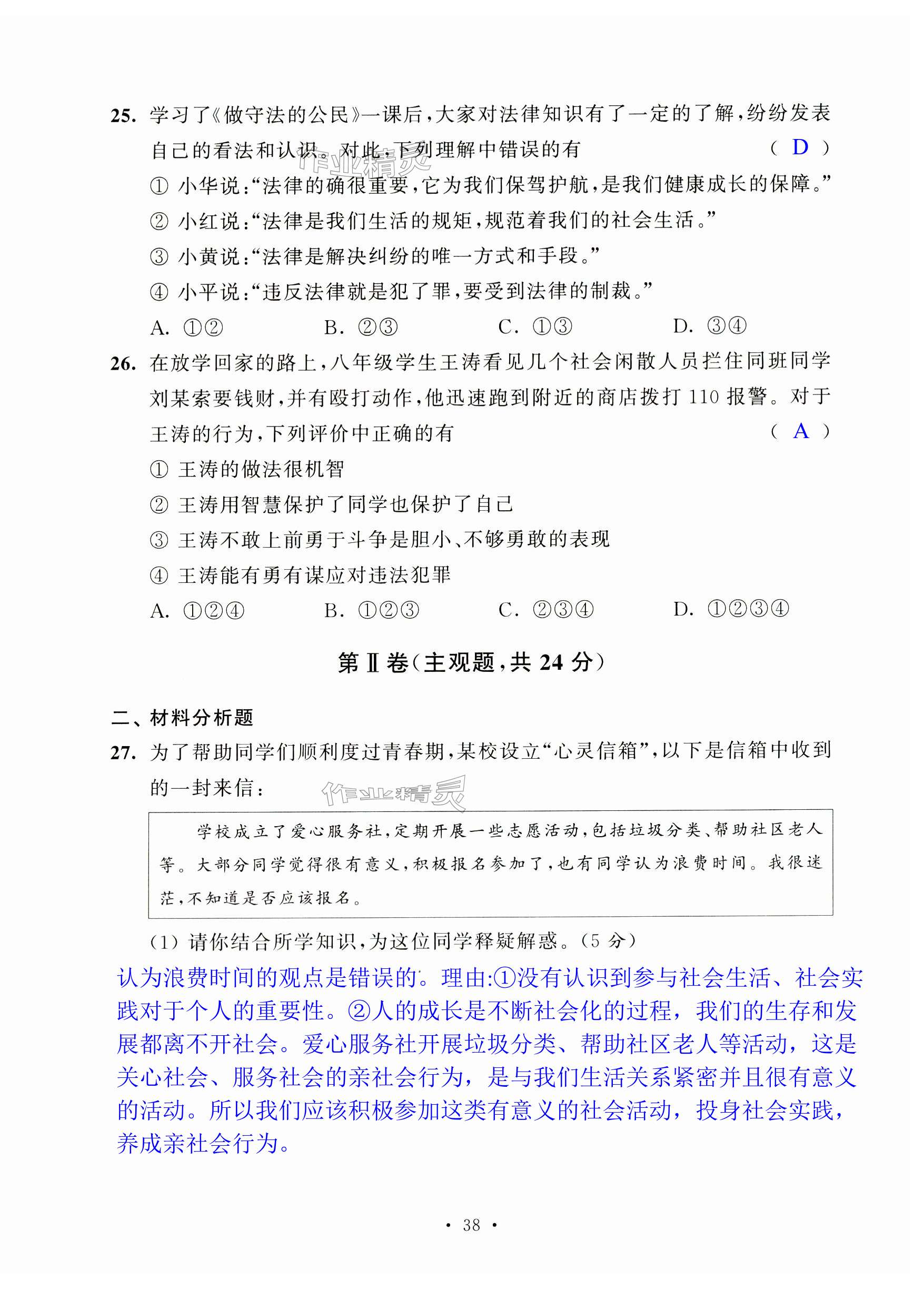 注:目前有些书本章节名称可能整理的还不是很完善,但都是按照顺序排列的,请同学们按照顺序仔细查找。练习册 2024年阳光互动绿色成长空间八年级道德与法治上册人教版提优版 答案主要是用来给同学们做完题方便对答案用的,请勿直接抄袭。