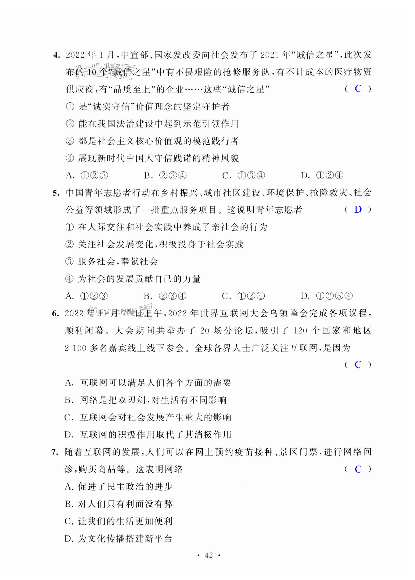 注:目前有些书本章节名称可能整理的还不是很完善,但都是按照顺序排列的,请同学们按照顺序仔细查找。练习册 2024年阳光互动绿色成长空间八年级道德与法治上册人教版提优版 答案主要是用来给同学们做完题方便对答案用的,请勿直接抄袭。