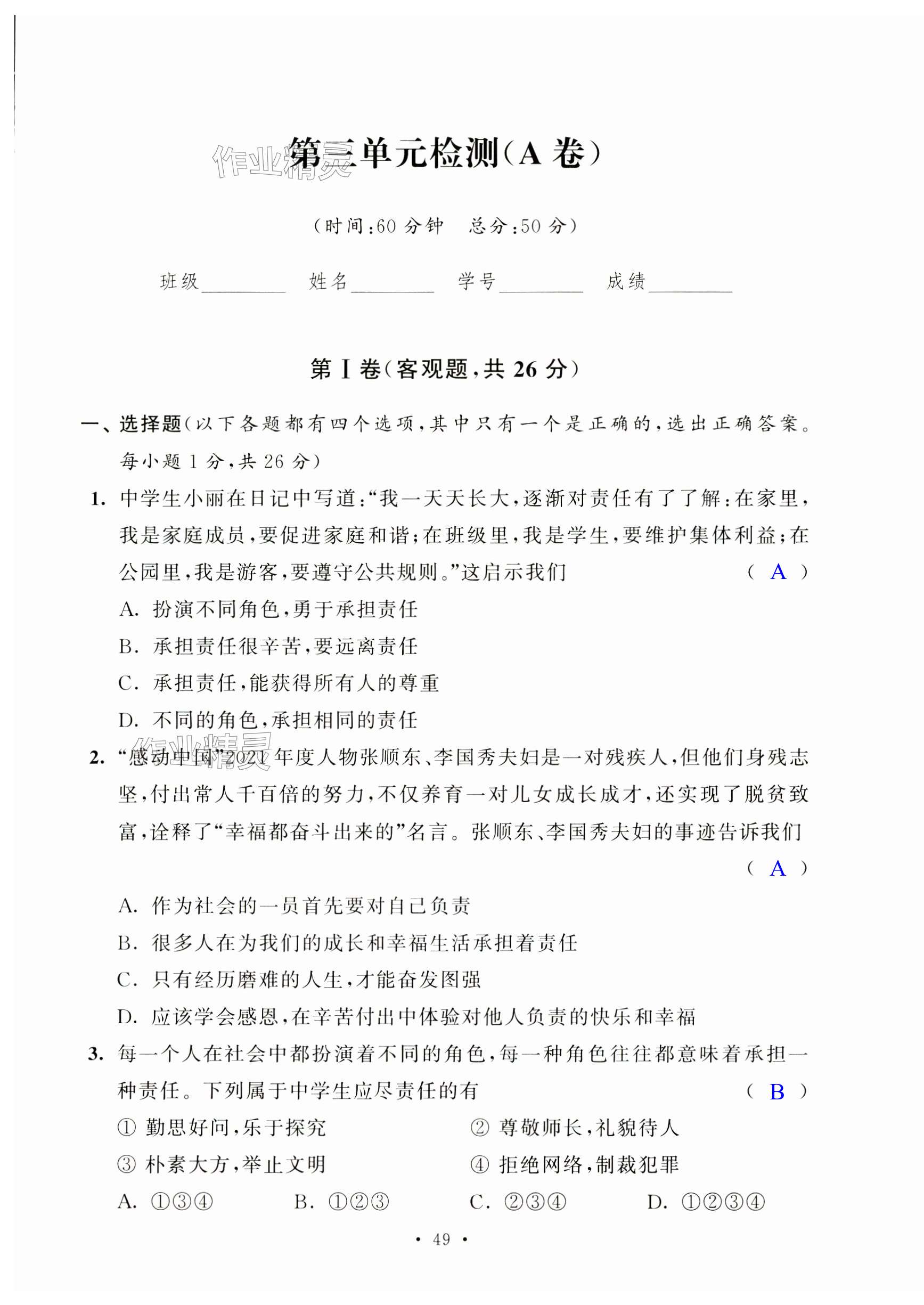 注:目前有些书本章节名称可能整理的还不是很完善,但都是按照顺序排列的,请同学们按照顺序仔细查找。练习册 2024年阳光互动绿色成长空间八年级道德与法治上册人教版提优版 答案主要是用来给同学们做完题方便对答案用的,请勿直接抄袭。