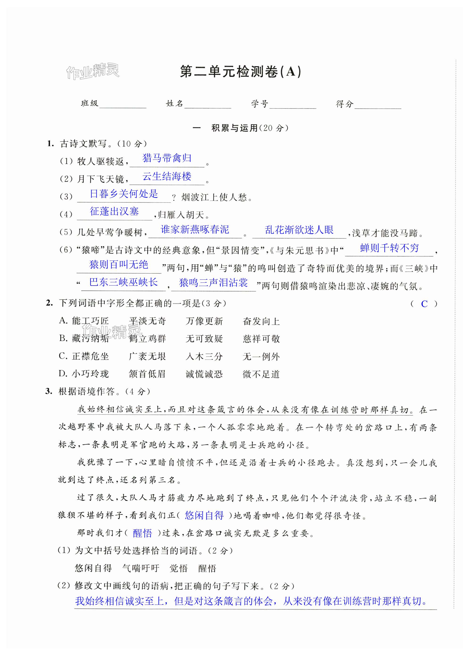 注:目前有些书本章节名称可能整理的还不是很完善,但都是按照顺序排列的,请同学们按照顺序仔细查找。练习册 2024年阳光互动绿色成长空间八年级语文上册人教版提优版 答案主要是用来给同学们做完题方便对答案用的,请勿直接抄袭。