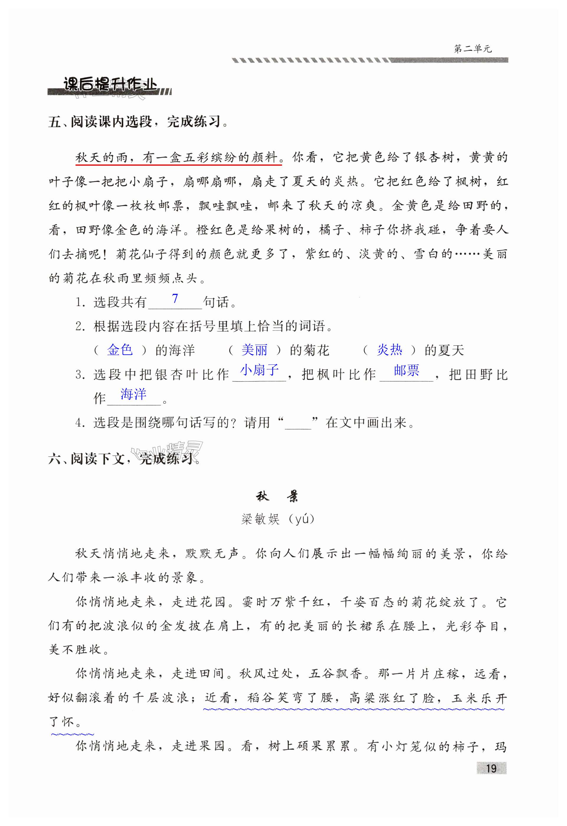 注:目前有些书本章节名称可能整理的还不是很完善,但都是按照顺序排列的,请同学们按照顺序仔细查找。练习册 2024年同步练习册人民教育出版社三年级语文上册人教版山东专版 答案主要是用来给同学们做完题方便对答案用的,请勿直接抄袭。