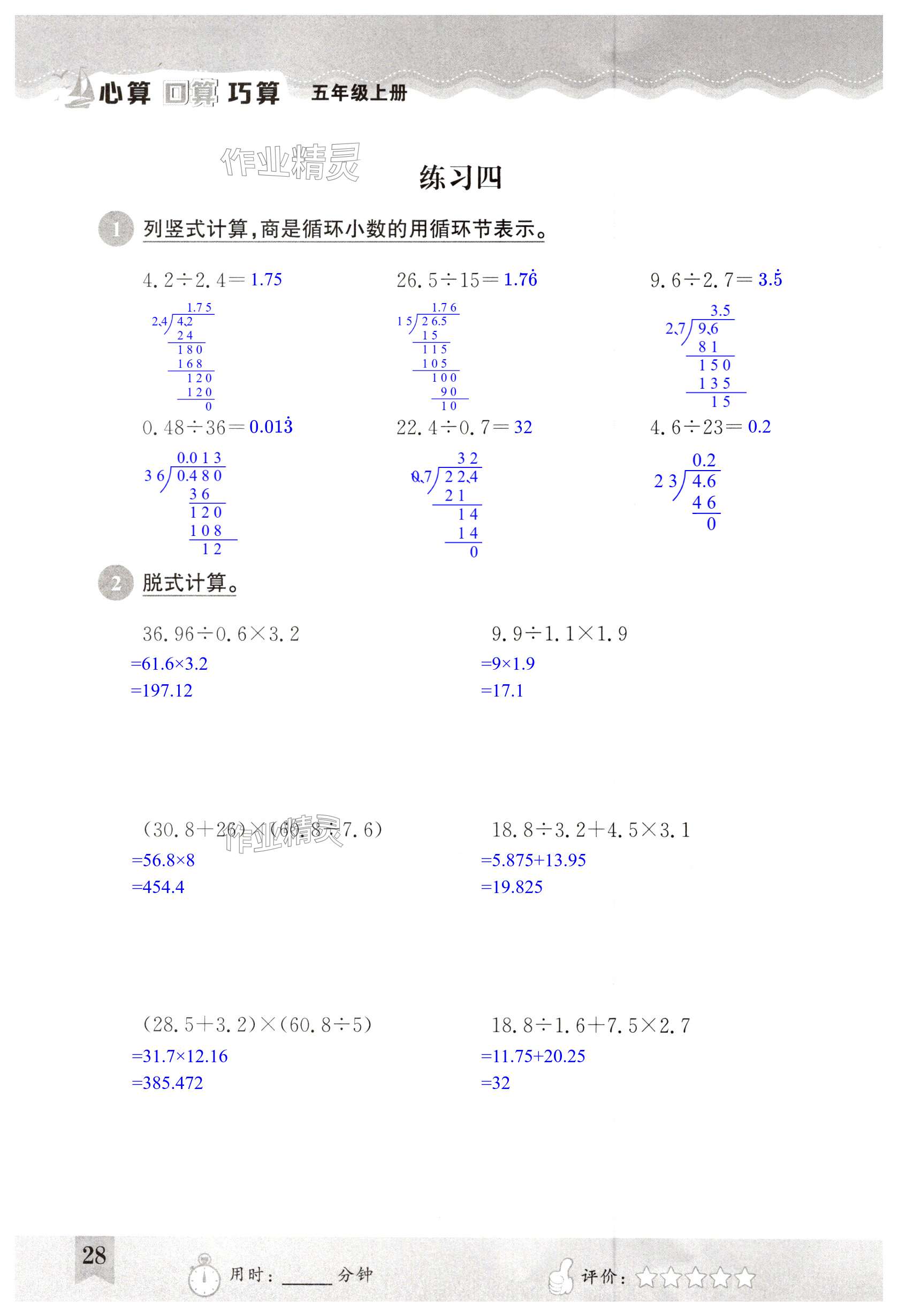 注:目前有些书本章节名称可能整理的还不是很完善,但都是按照顺序排列的,请同学们按照顺序仔细查找。练习册 2024年心算口算巧算五年级上册北师大版 答案主要是用来给同学们做完题方便对答案用的,请勿直接抄袭。
