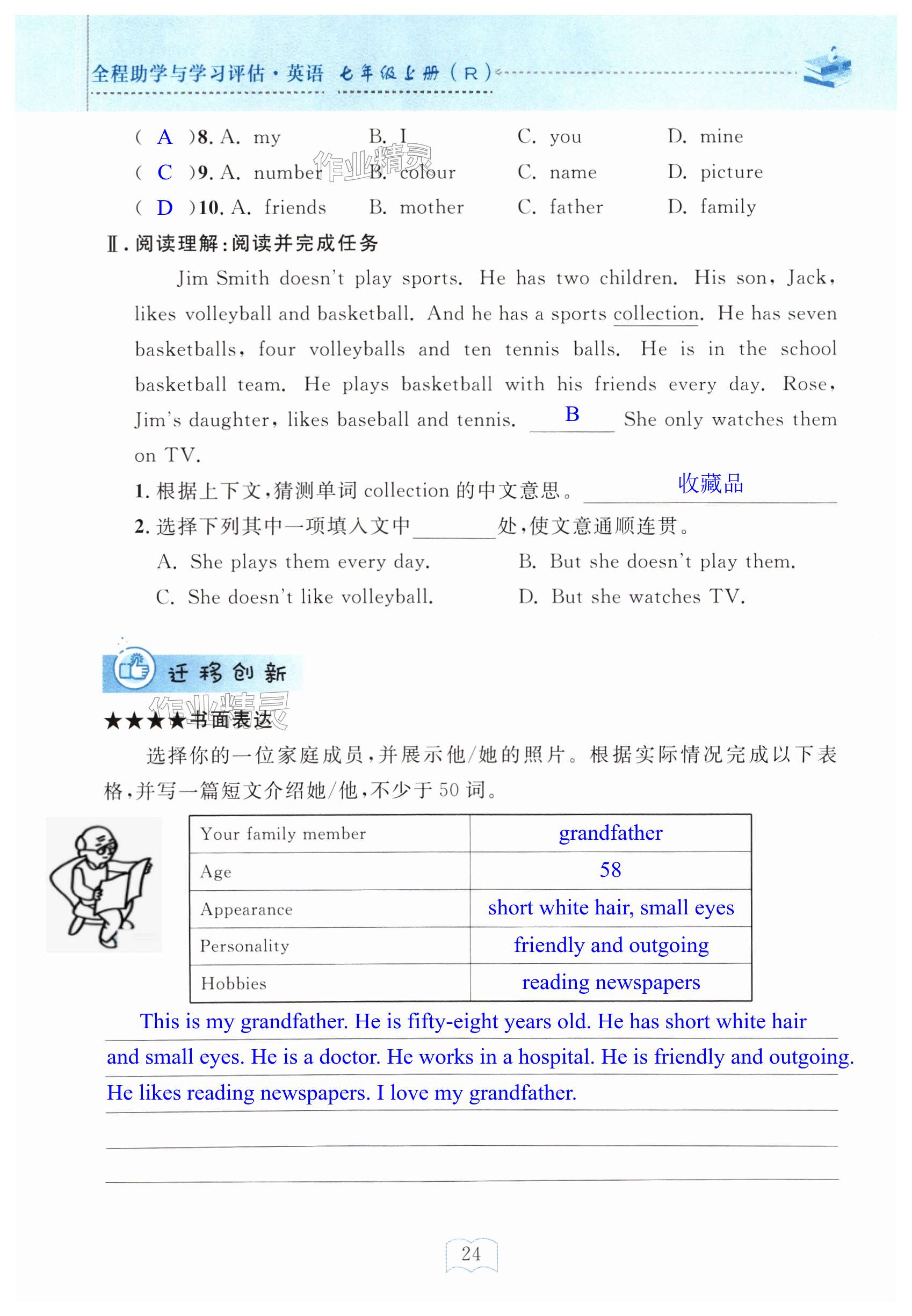 注:目前有些书本章节名称可能整理的还不是很完善,但都是按照顺序排列的,请同学们按照顺序仔细查找。练习册 2024年全程助学与学习评估七年级英语上册人教版 答案主要是用来给同学们做完题方便对答案用的,请勿直接抄袭。