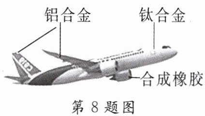 8. C919是中国自主设计并且研制的国产大型客机(如图所示),最大航程5555千米,最大载客量为190座。