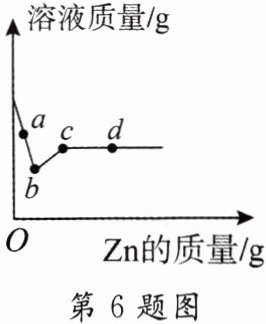 6. 向一定质量${AgNO_{3}}和{Cu(NO_{3})_{2}}的混合溶液中加入{Zn}$,溶液质量与加入${Zn}$的质量关系如图所示,则下列说法正确的是( )