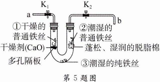 5. 铁合金是生产生活中使用非常广泛的金属材料,但铁制品容易被腐蚀而在表面生成红褐色的铁锈。为探究铁制品锈蚀的条件,寻找防止铁制品锈蚀的方法,现进行如下实验: