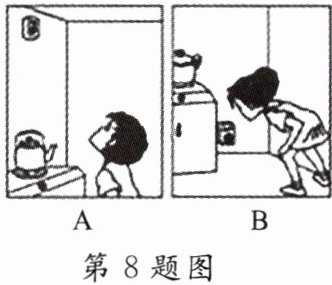 8. 家用燃气主要有天然气、管道煤气和罐装液化石油气。为防止燃气泄漏造成危险,可以在厨房中安装泄漏报警器(如图所示)。