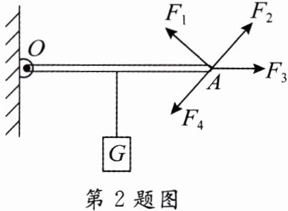 2. 为使杠杆保持如图水平位置平衡,需在 $ A $ 点施加一个力。图中不能使杠杆平衡的力是( )