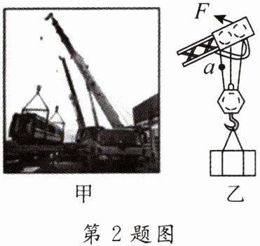 2. 图甲所示为工地中正在工作的起重机,此时物体匀速上升,其滑轮部分结构示意图如图乙所示。所有装置的重力及摩擦力均不计,则下列说法正确的是( )