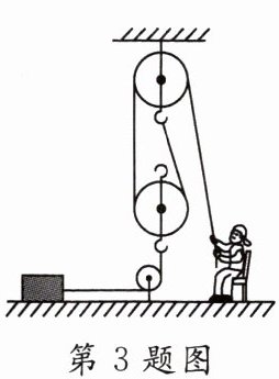 3. 小科用如图所示的滑轮组在 4 秒内将一个重为 100 N 的物体,沿着水平地面匀速拉动了 2 米。拉力为 18 N,物体移动时受到地面的摩擦力为物重的 0.35 倍,不计绳重及机械的摩擦。那么,动力端拉动绳子的速度是______,动滑轮受到的重力是______。