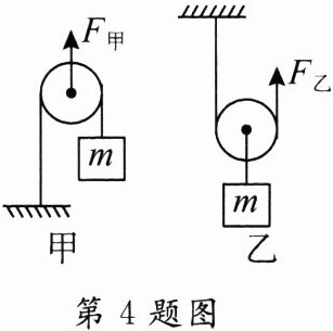4. 如图所示,利用相同的滑轮组装成甲、乙两种装置,分别将重为 10N 的同一个物体匀速向上提升 1m,已知滑轮重 1N,不计绳重和摩擦,则下列说法中正确的是( )