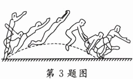3. 立定跳远是中学生喜爱的体育项目之一,其动作分解如图所示。下列对某中学生在立定跳远过程中的相关分析正确的是( )