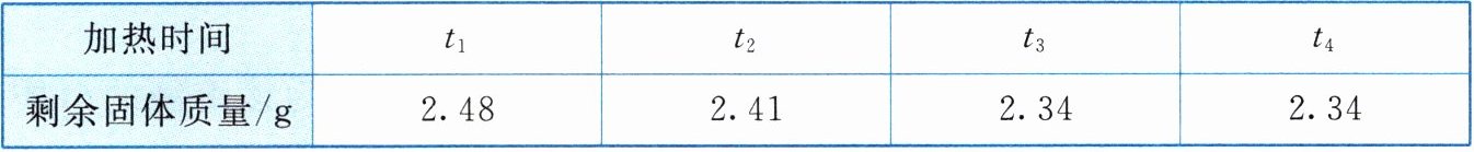 |剩余固体质量/g| $2.48$ | $2.41$ | $2.34$ | $2.34$ |