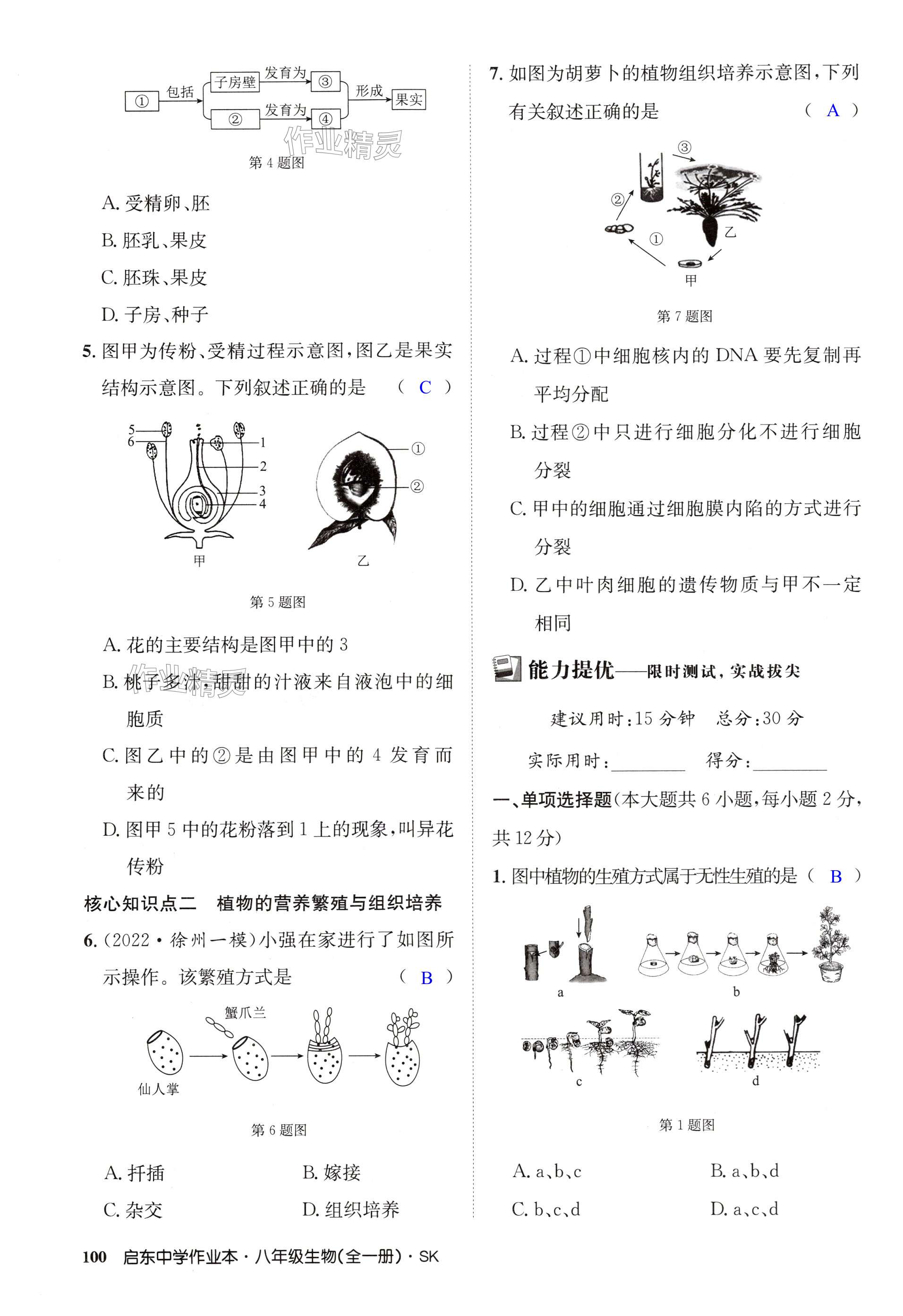 注:目前有些书本章节名称可能整理的还不是很完善,但都是按照顺序排列的,请同学们按照顺序仔细查找。练习册 2024年启东中学作业本八年级生物全一册苏科版 答案主要是用来给同学们做完题方便对答案用的,请勿直接抄袭。