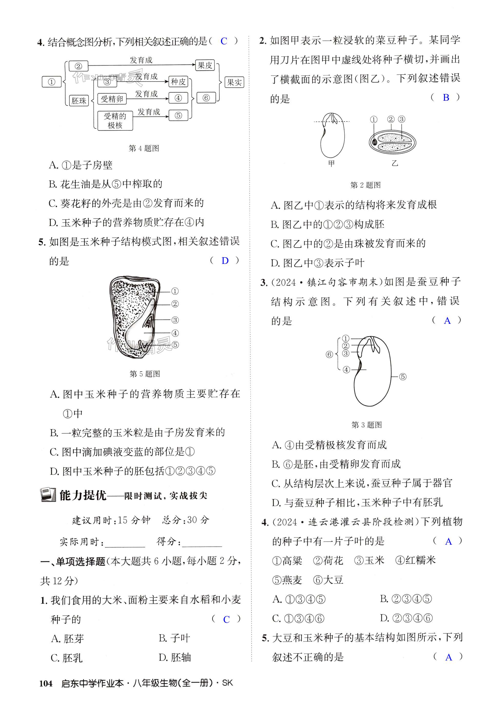 注:目前有些书本章节名称可能整理的还不是很完善,但都是按照顺序排列的,请同学们按照顺序仔细查找。练习册 2024年启东中学作业本八年级生物全一册苏科版 答案主要是用来给同学们做完题方便对答案用的,请勿直接抄袭。