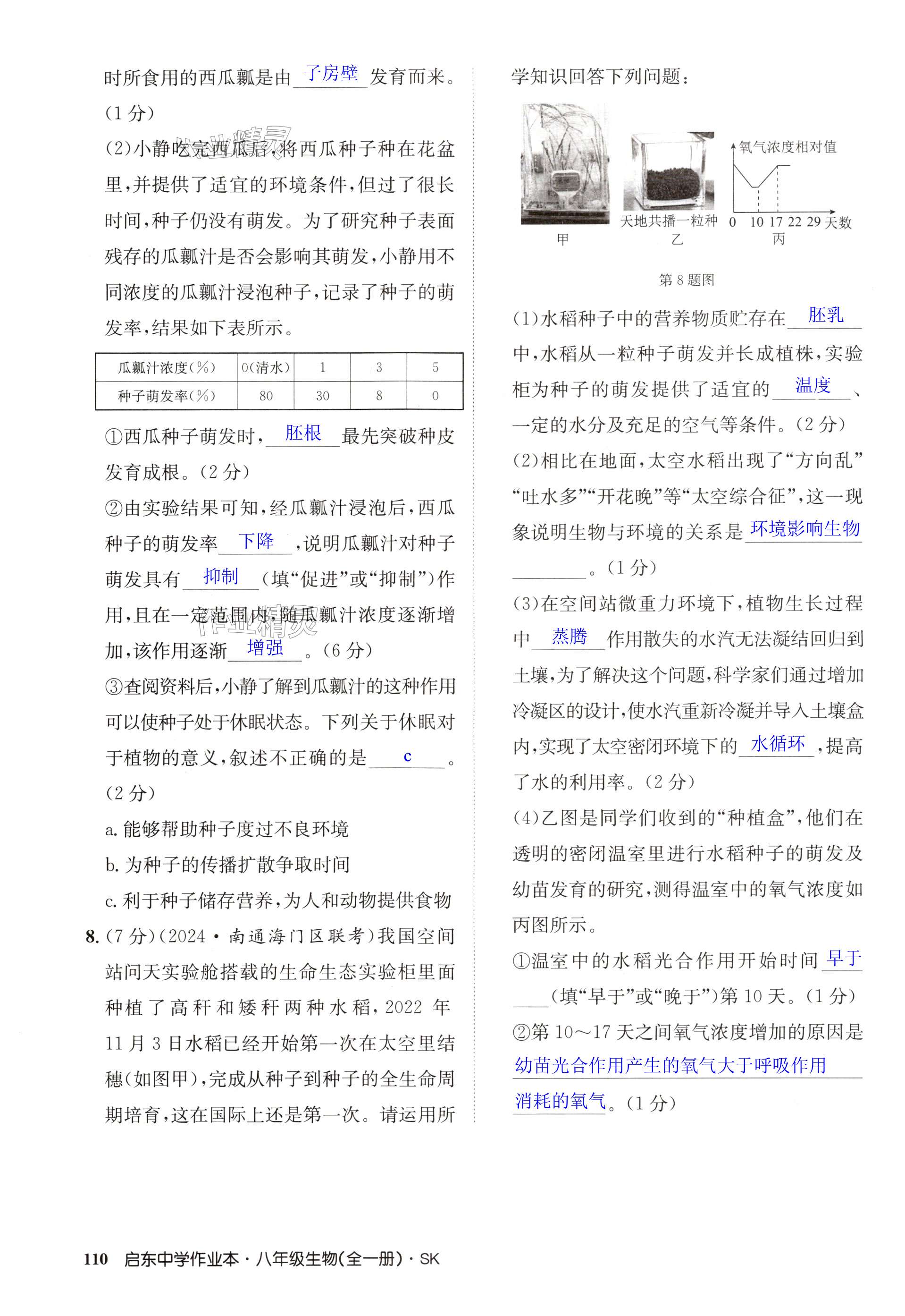 注:目前有些书本章节名称可能整理的还不是很完善,但都是按照顺序排列的,请同学们按照顺序仔细查找。练习册 2024年启东中学作业本八年级生物全一册苏科版 答案主要是用来给同学们做完题方便对答案用的,请勿直接抄袭。