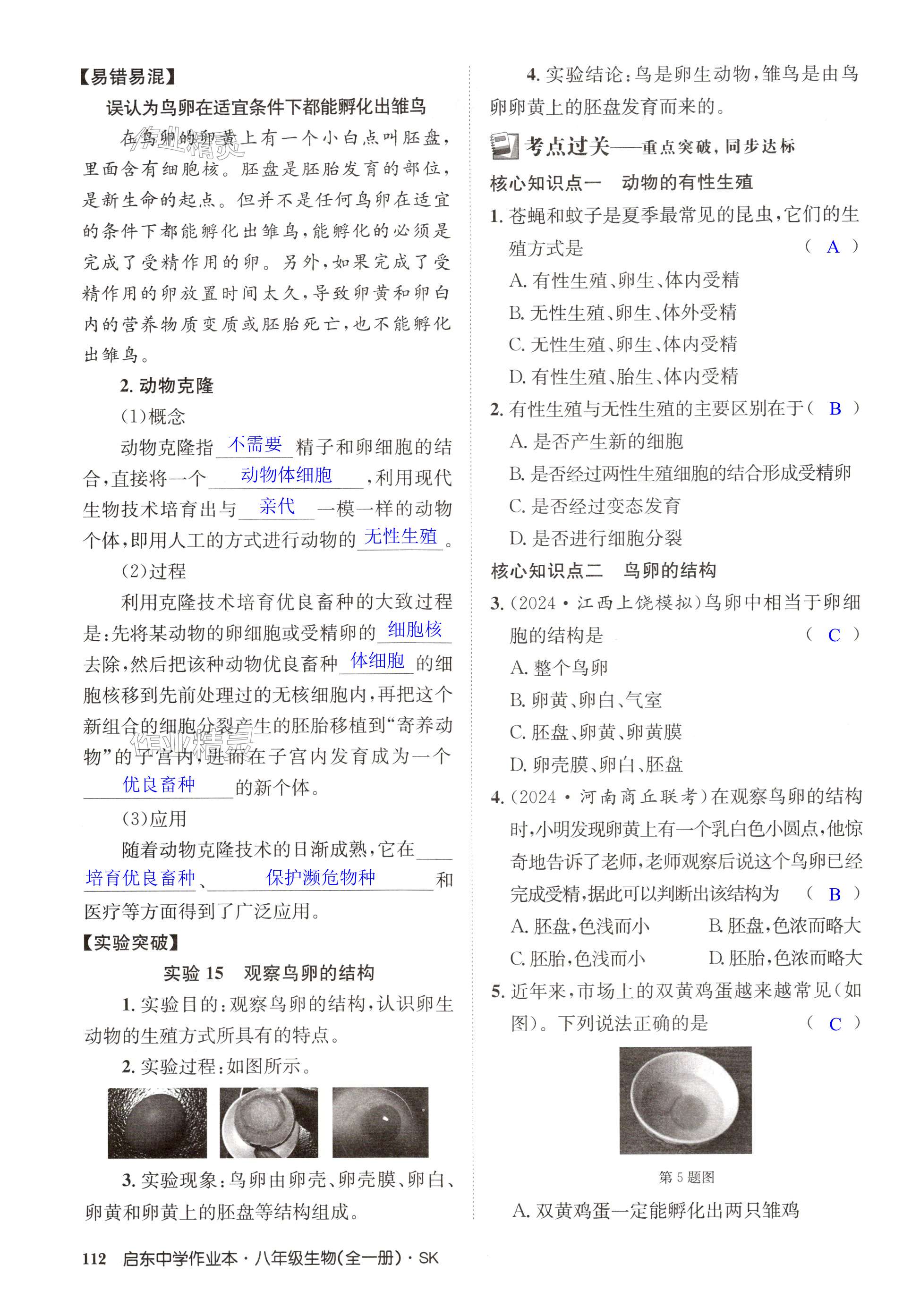 注:目前有些书本章节名称可能整理的还不是很完善,但都是按照顺序排列的,请同学们按照顺序仔细查找。练习册 2024年启东中学作业本八年级生物全一册苏科版 答案主要是用来给同学们做完题方便对答案用的,请勿直接抄袭。