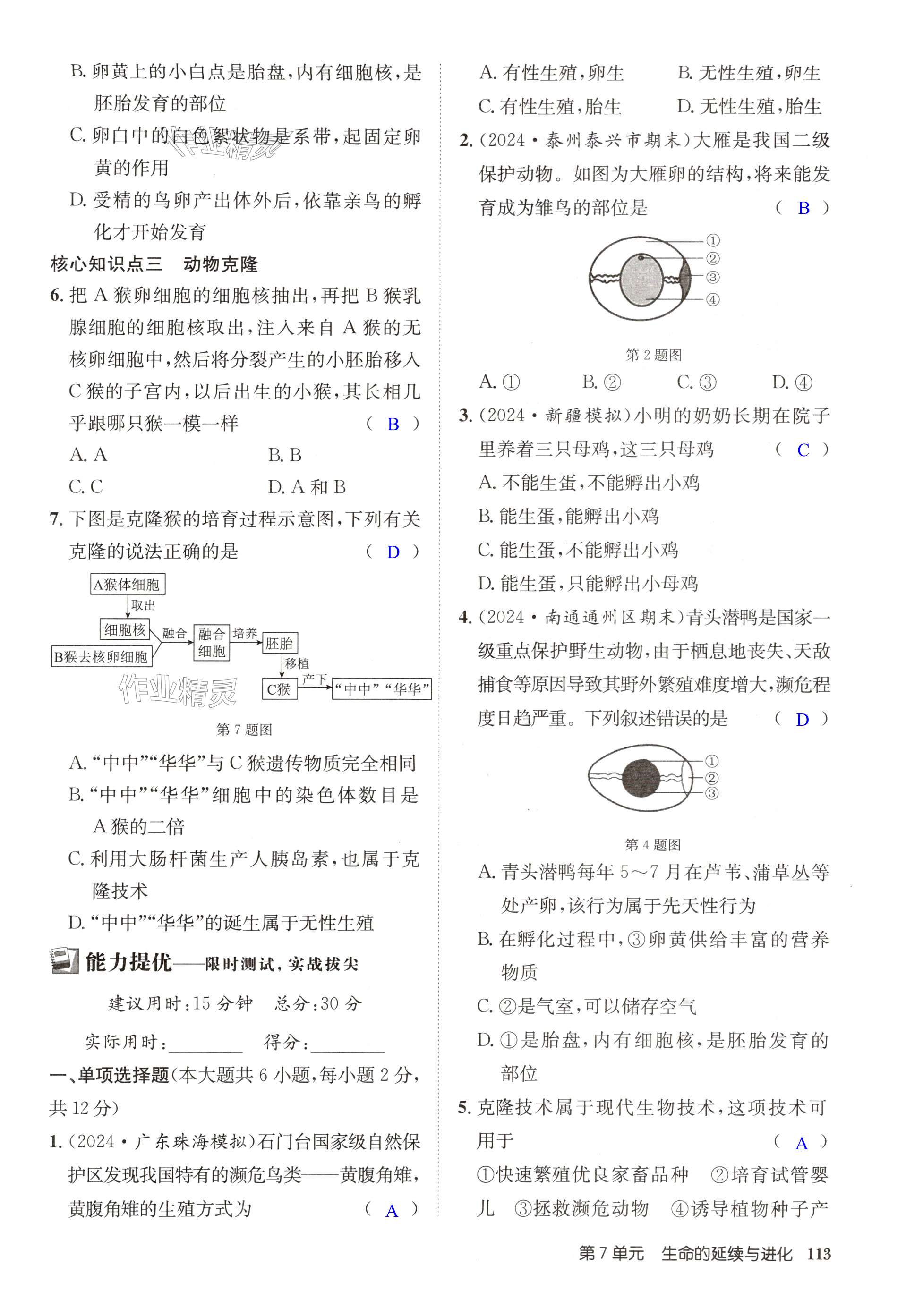 注:目前有些书本章节名称可能整理的还不是很完善,但都是按照顺序排列的,请同学们按照顺序仔细查找。练习册 2024年启东中学作业本八年级生物全一册苏科版 答案主要是用来给同学们做完题方便对答案用的,请勿直接抄袭。