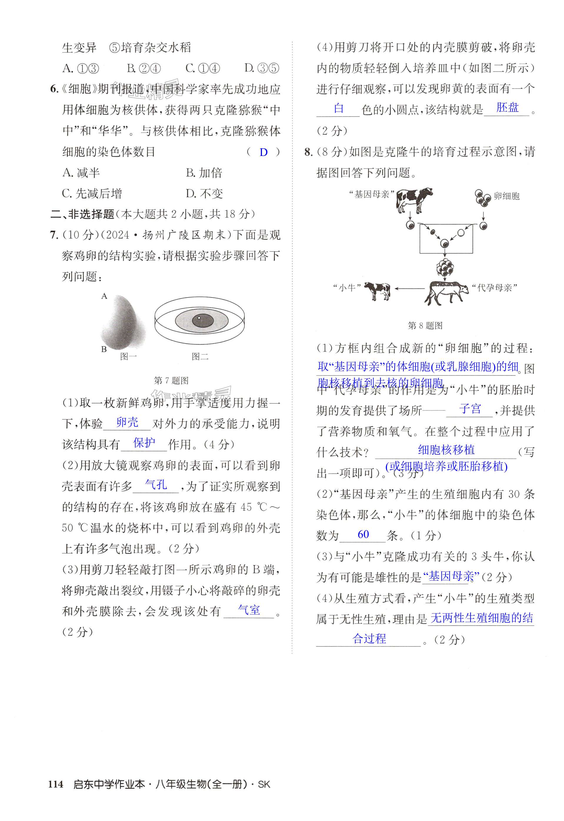 注:目前有些书本章节名称可能整理的还不是很完善,但都是按照顺序排列的,请同学们按照顺序仔细查找。练习册 2024年启东中学作业本八年级生物全一册苏科版 答案主要是用来给同学们做完题方便对答案用的,请勿直接抄袭。
