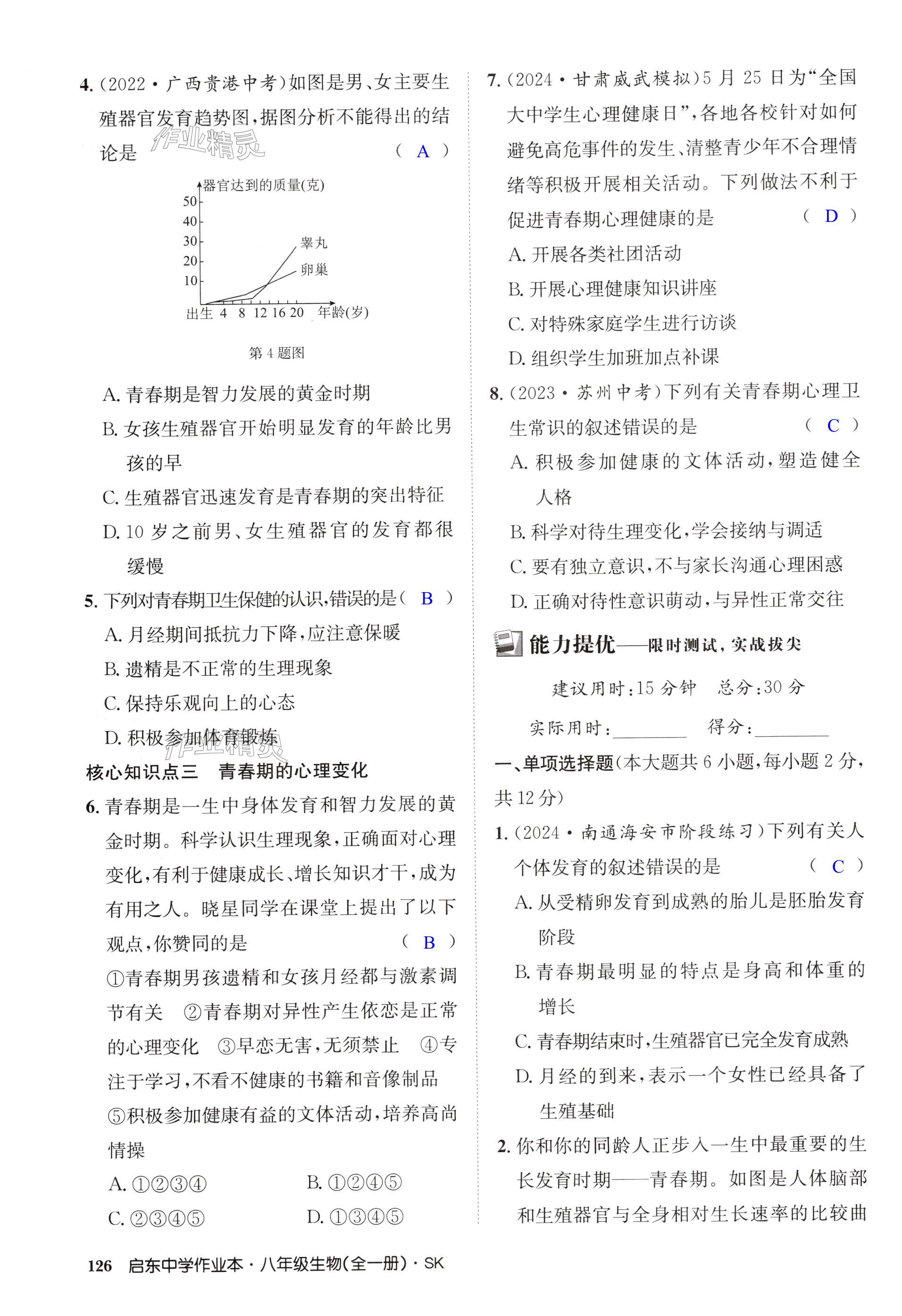 注:目前有些书本章节名称可能整理的还不是很完善,但都是按照顺序排列的,请同学们按照顺序仔细查找。练习册 2024年启东中学作业本八年级生物全一册苏科版 答案主要是用来给同学们做完题方便对答案用的,请勿直接抄袭。