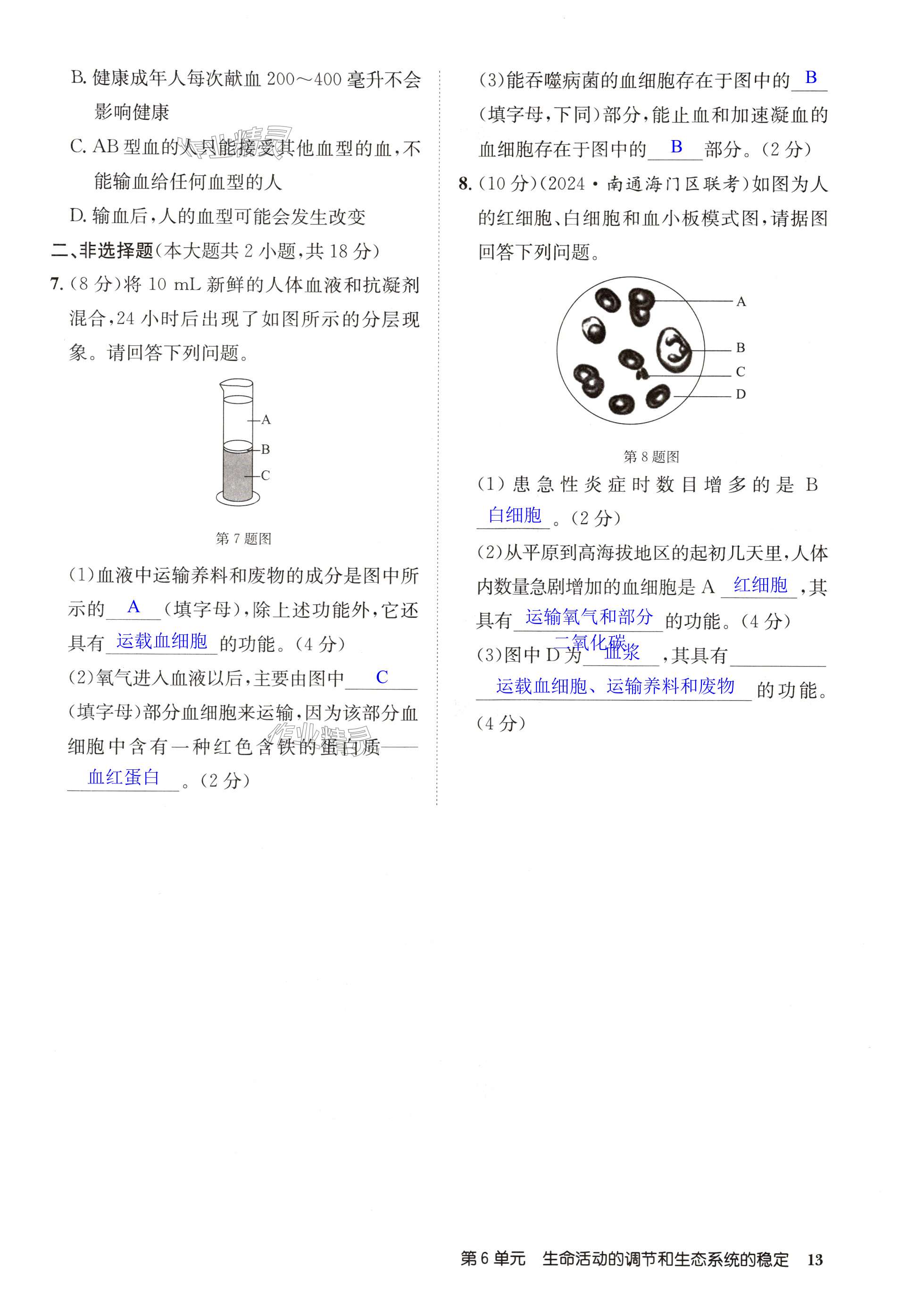 注:目前有些书本章节名称可能整理的还不是很完善,但都是按照顺序排列的,请同学们按照顺序仔细查找。练习册 2024年启东中学作业本八年级生物全一册苏科版 答案主要是用来给同学们做完题方便对答案用的,请勿直接抄袭。