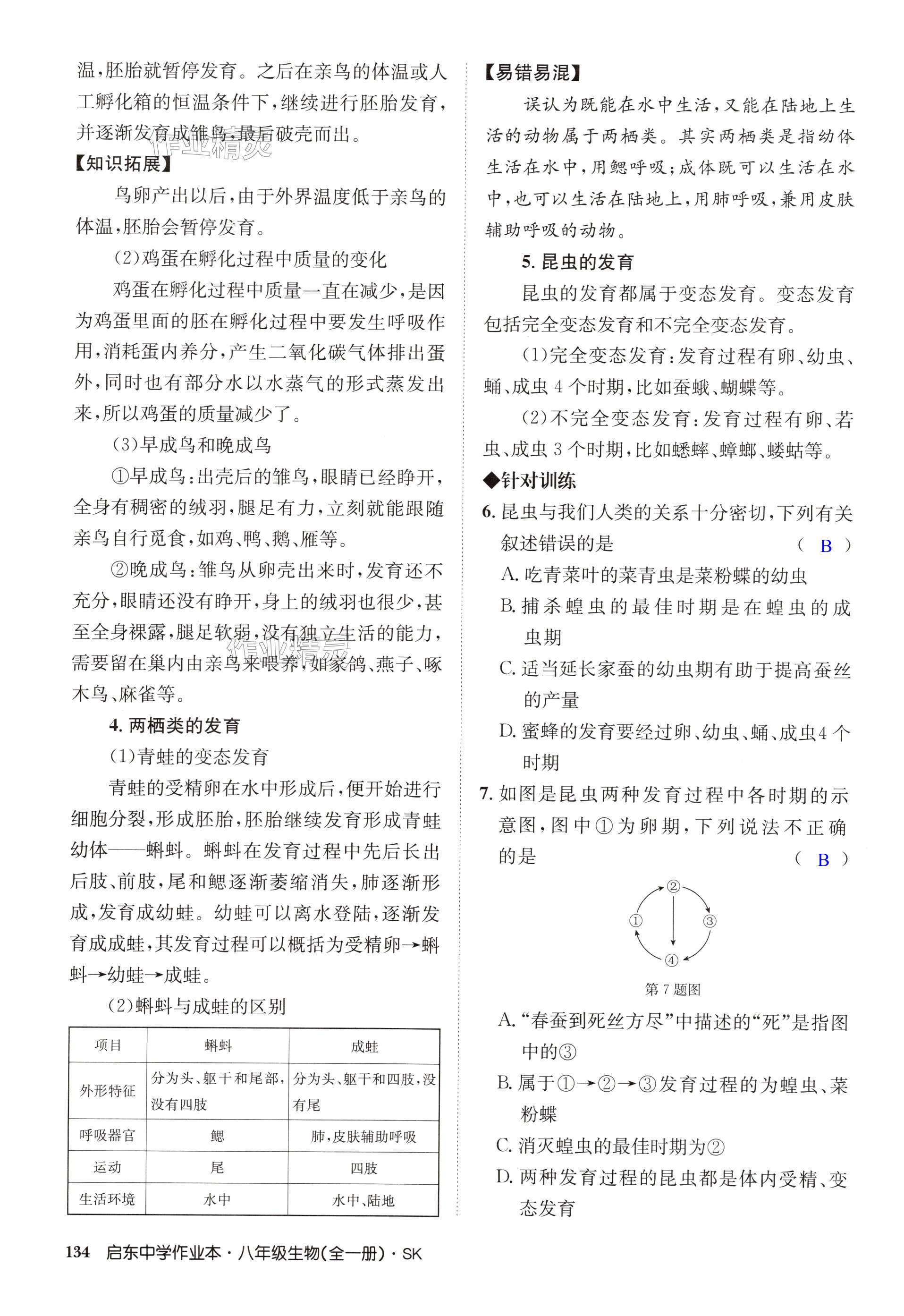 注:目前有些书本章节名称可能整理的还不是很完善,但都是按照顺序排列的,请同学们按照顺序仔细查找。练习册 2024年启东中学作业本八年级生物全一册苏科版 答案主要是用来给同学们做完题方便对答案用的,请勿直接抄袭。