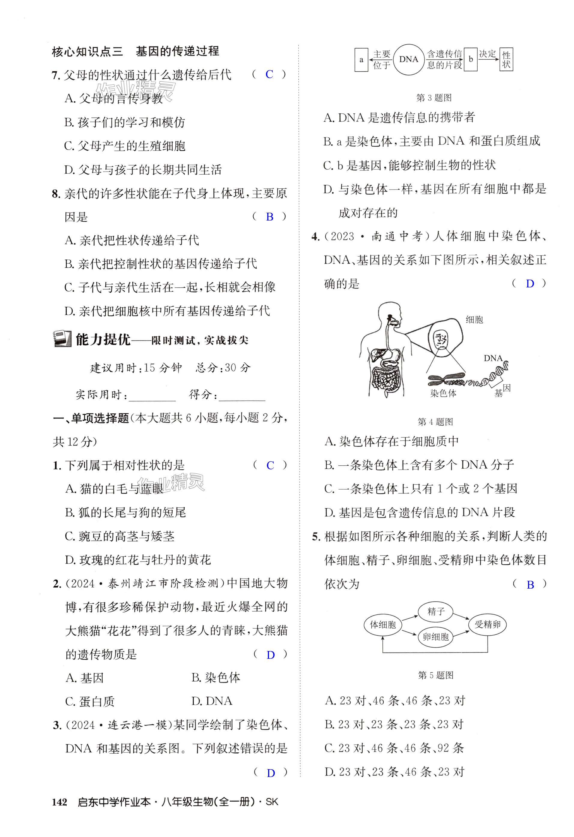 注:目前有些书本章节名称可能整理的还不是很完善,但都是按照顺序排列的,请同学们按照顺序仔细查找。练习册 2024年启东中学作业本八年级生物全一册苏科版 答案主要是用来给同学们做完题方便对答案用的,请勿直接抄袭。