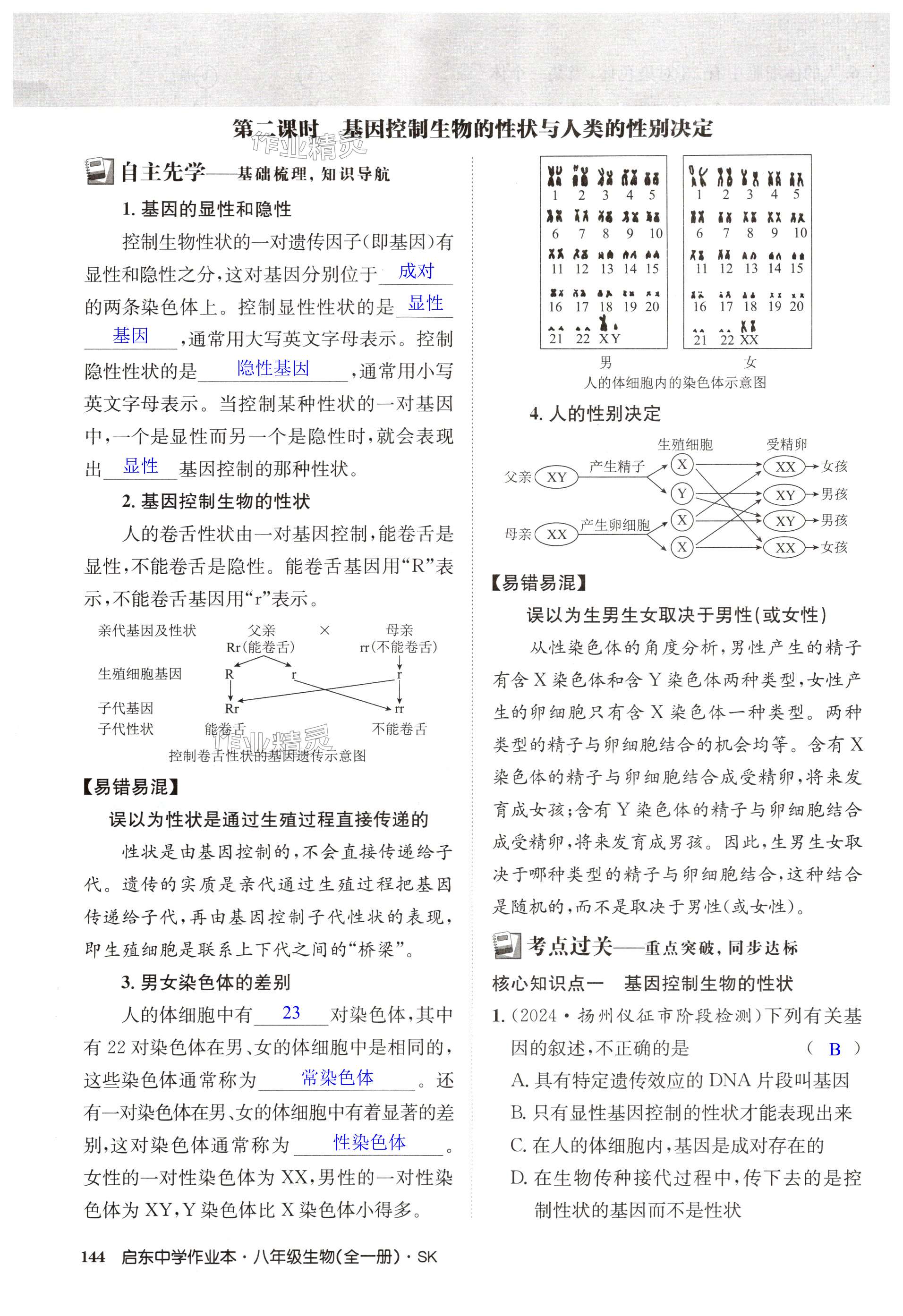 注:目前有些书本章节名称可能整理的还不是很完善,但都是按照顺序排列的,请同学们按照顺序仔细查找。练习册 2024年启东中学作业本八年级生物全一册苏科版 答案主要是用来给同学们做完题方便对答案用的,请勿直接抄袭。