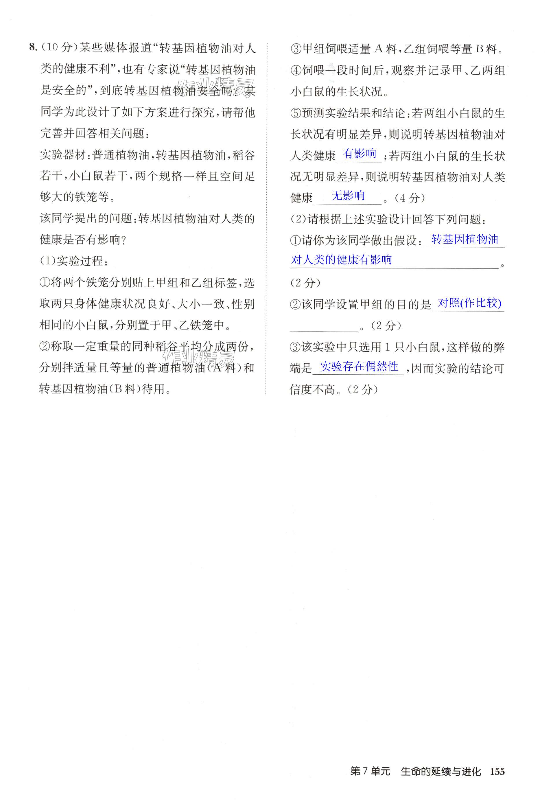 注:目前有些书本章节名称可能整理的还不是很完善,但都是按照顺序排列的,请同学们按照顺序仔细查找。练习册 2024年启东中学作业本八年级生物全一册苏科版 答案主要是用来给同学们做完题方便对答案用的,请勿直接抄袭。