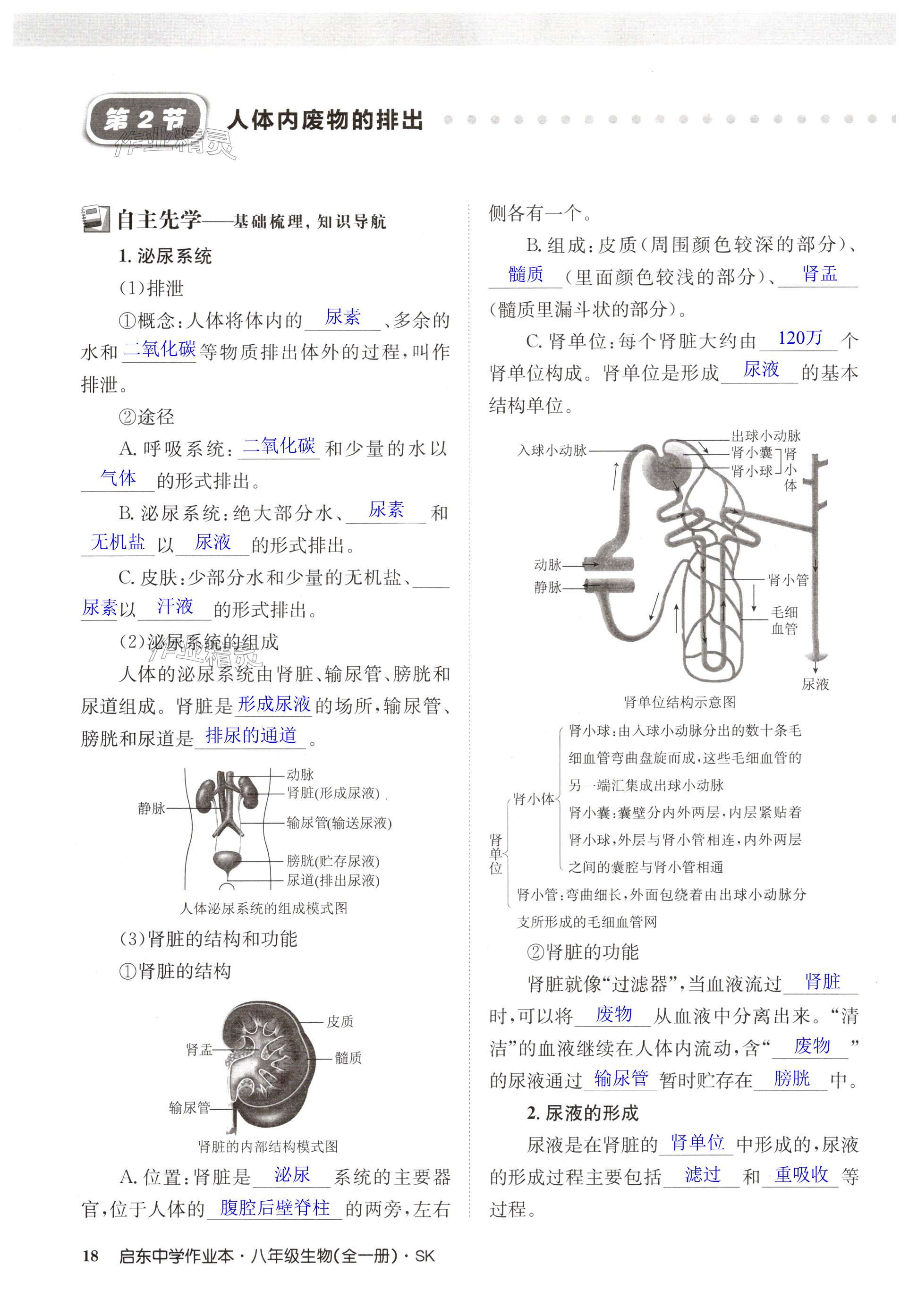 注:目前有些书本章节名称可能整理的还不是很完善,但都是按照顺序排列的,请同学们按照顺序仔细查找。练习册 2024年启东中学作业本八年级生物全一册苏科版 答案主要是用来给同学们做完题方便对答案用的,请勿直接抄袭。