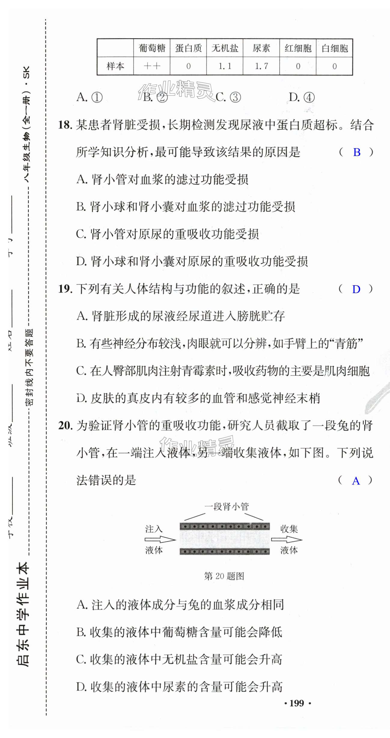注:目前有些书本章节名称可能整理的还不是很完善,但都是按照顺序排列的,请同学们按照顺序仔细查找。练习册 2024年启东中学作业本八年级生物全一册苏科版 答案主要是用来给同学们做完题方便对答案用的,请勿直接抄袭。