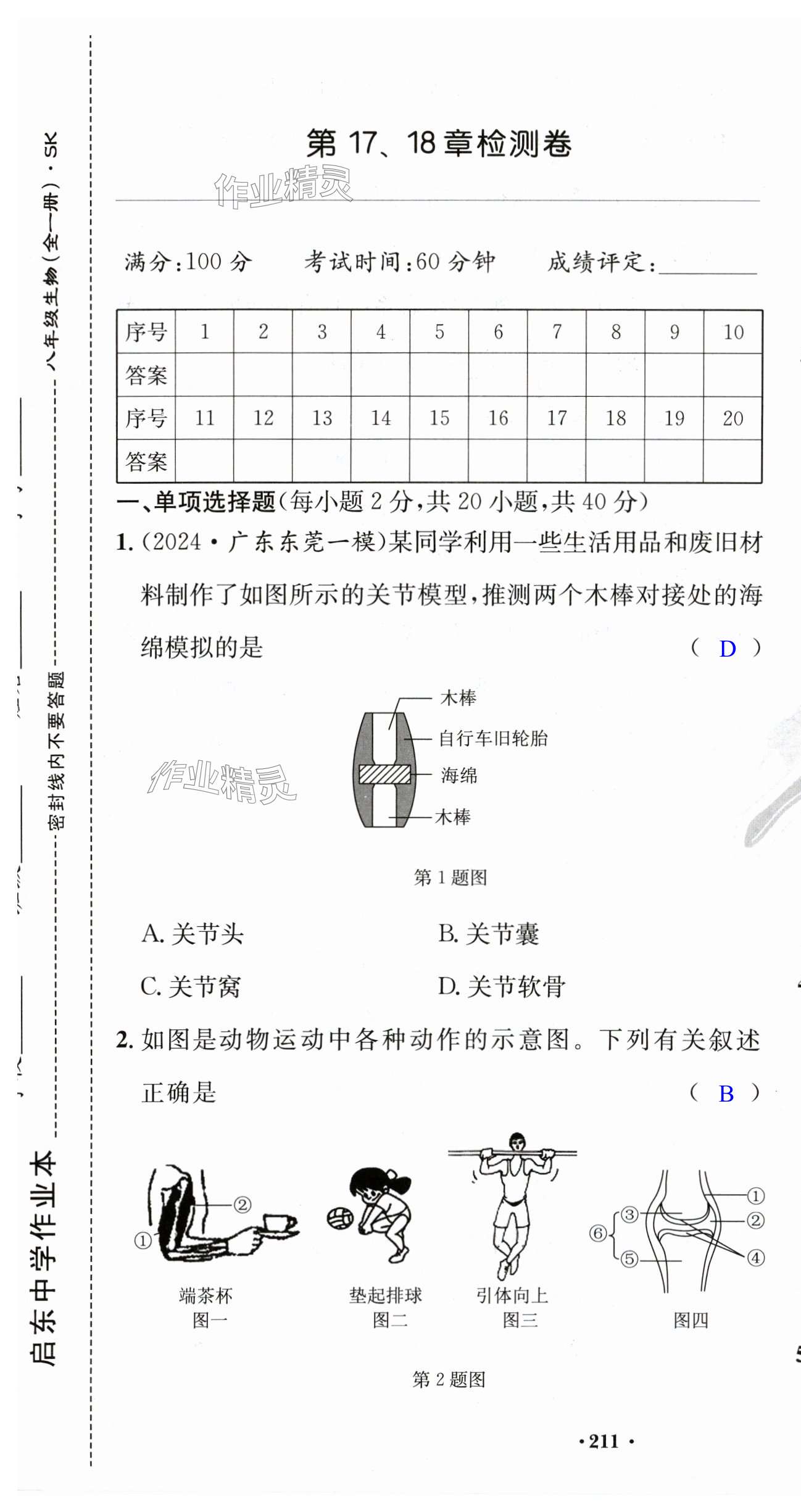 注:目前有些书本章节名称可能整理的还不是很完善,但都是按照顺序排列的,请同学们按照顺序仔细查找。练习册 2024年启东中学作业本八年级生物全一册苏科版 答案主要是用来给同学们做完题方便对答案用的,请勿直接抄袭。