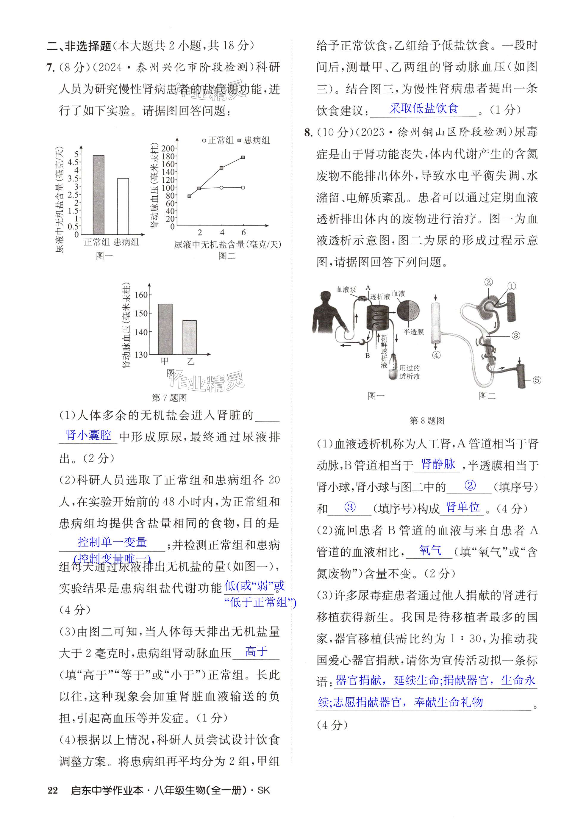 注:目前有些书本章节名称可能整理的还不是很完善,但都是按照顺序排列的,请同学们按照顺序仔细查找。练习册 2024年启东中学作业本八年级生物全一册苏科版 答案主要是用来给同学们做完题方便对答案用的,请勿直接抄袭。