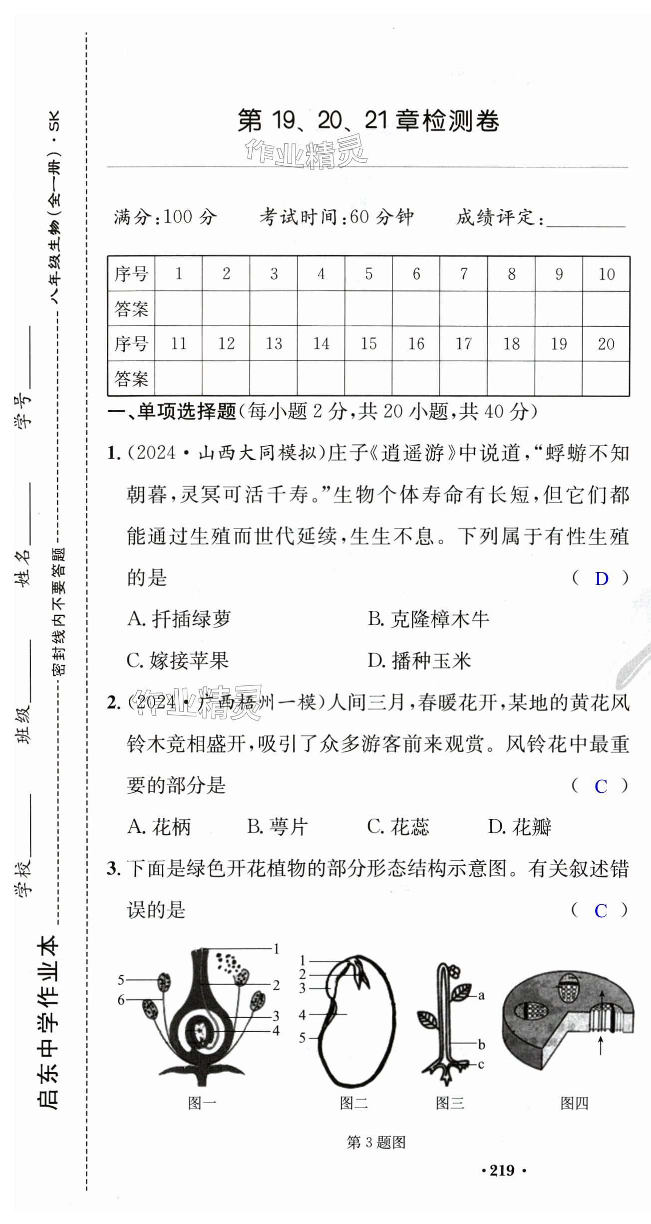 注:目前有些书本章节名称可能整理的还不是很完善,但都是按照顺序排列的,请同学们按照顺序仔细查找。练习册 2024年启东中学作业本八年级生物全一册苏科版 答案主要是用来给同学们做完题方便对答案用的,请勿直接抄袭。