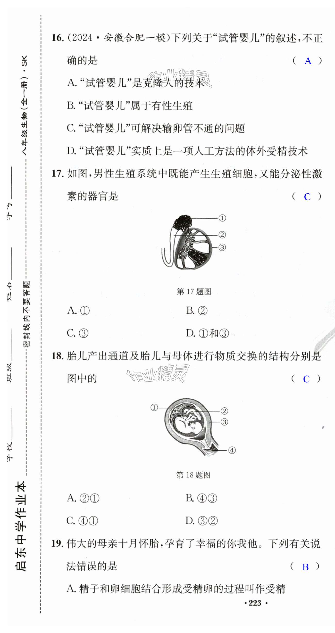 注:目前有些书本章节名称可能整理的还不是很完善,但都是按照顺序排列的,请同学们按照顺序仔细查找。练习册 2024年启东中学作业本八年级生物全一册苏科版 答案主要是用来给同学们做完题方便对答案用的,请勿直接抄袭。
