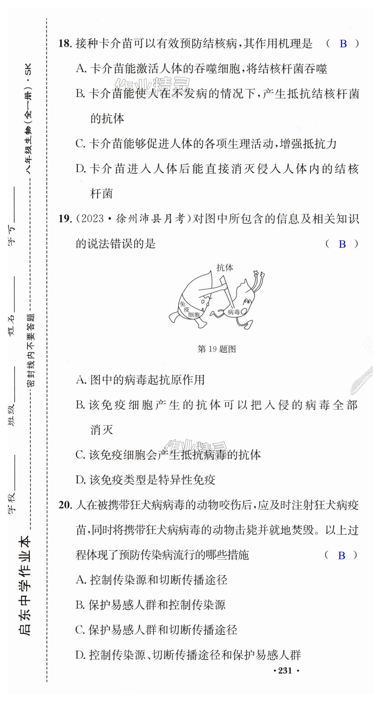 注:目前有些书本章节名称可能整理的还不是很完善,但都是按照顺序排列的,请同学们按照顺序仔细查找。练习册 2024年启东中学作业本八年级生物全一册苏科版 答案主要是用来给同学们做完题方便对答案用的,请勿直接抄袭。