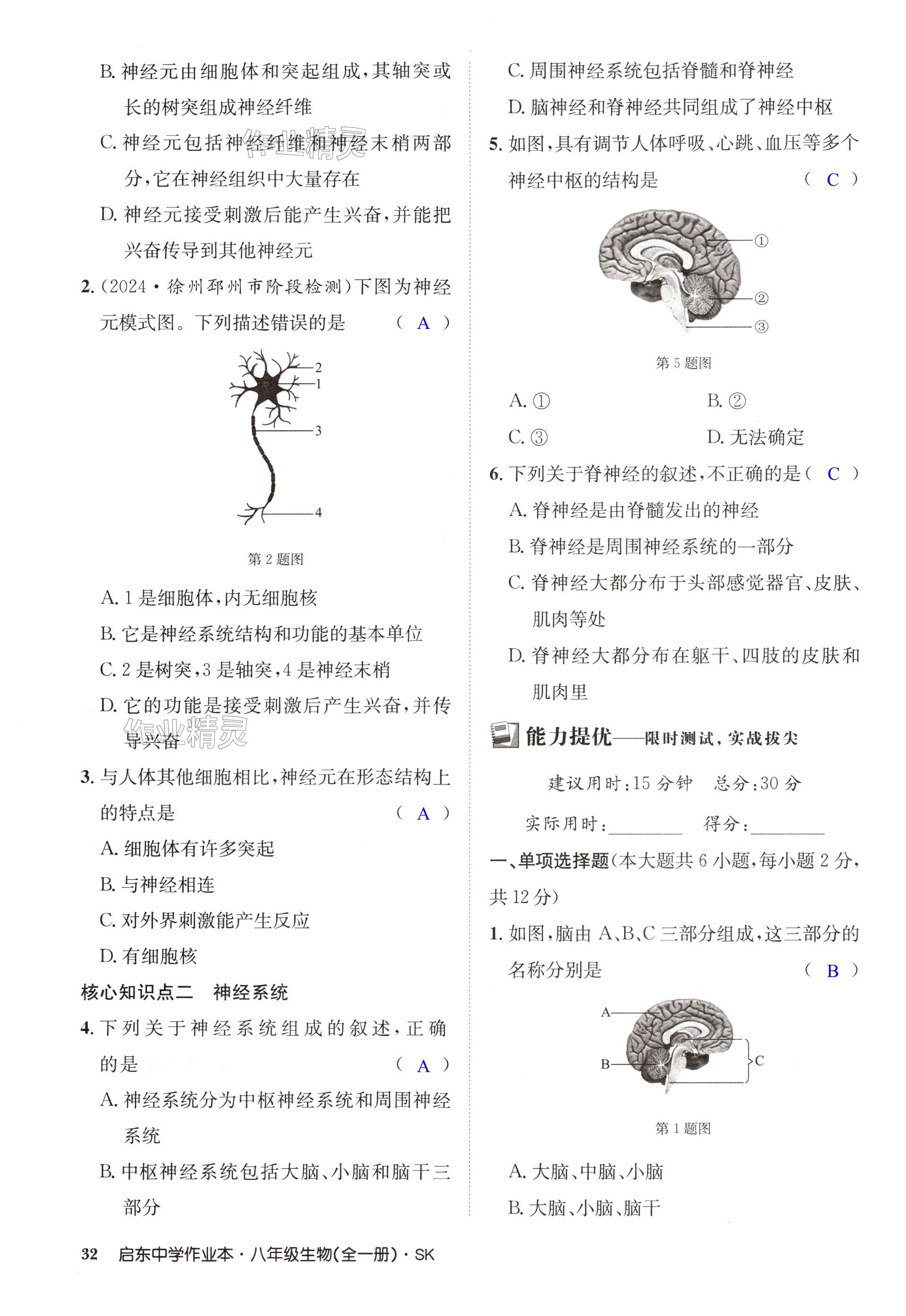 注:目前有些书本章节名称可能整理的还不是很完善,但都是按照顺序排列的,请同学们按照顺序仔细查找。练习册 2024年启东中学作业本八年级生物全一册苏科版 答案主要是用来给同学们做完题方便对答案用的,请勿直接抄袭。