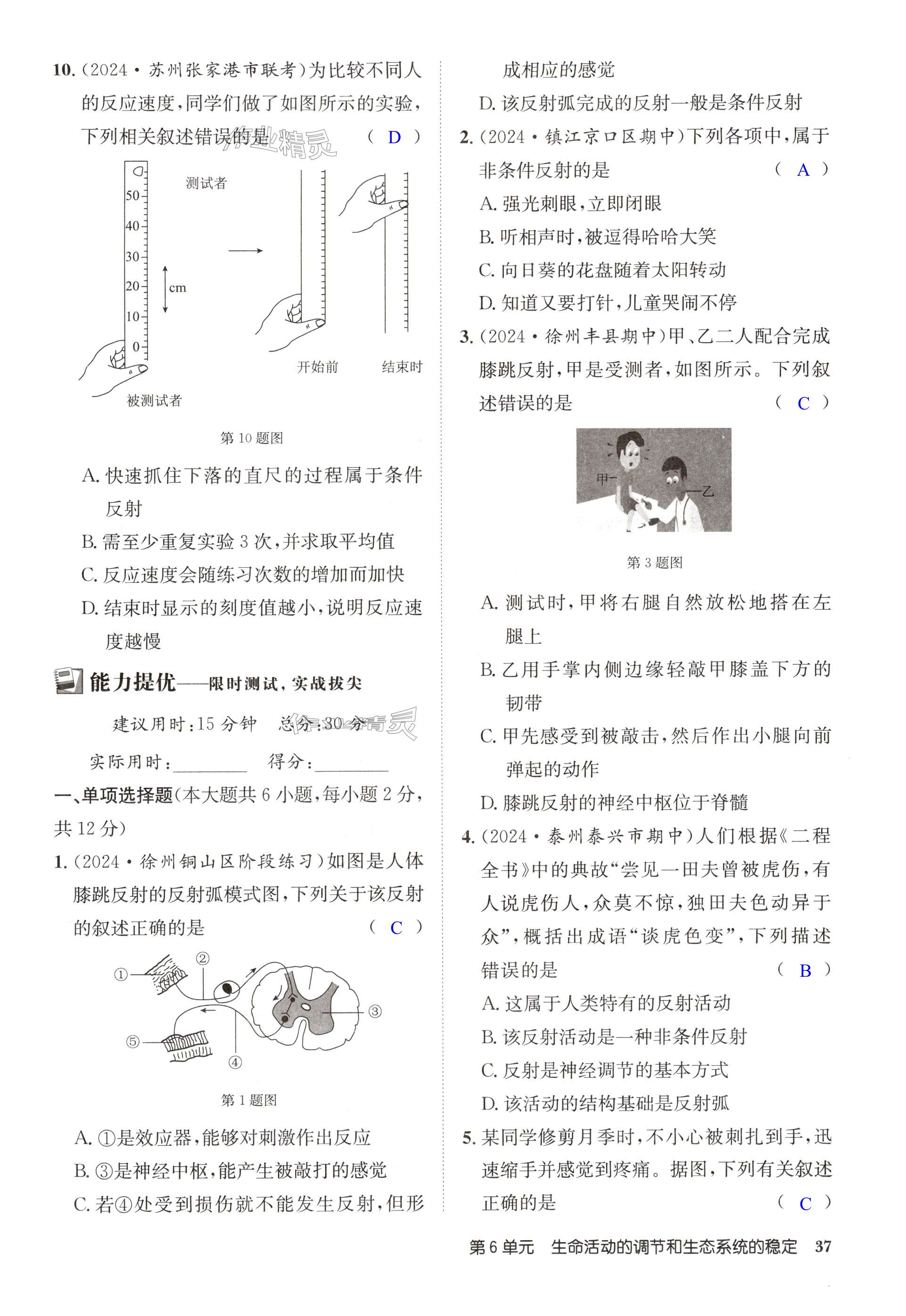 注:目前有些书本章节名称可能整理的还不是很完善,但都是按照顺序排列的,请同学们按照顺序仔细查找。练习册 2024年启东中学作业本八年级生物全一册苏科版 答案主要是用来给同学们做完题方便对答案用的,请勿直接抄袭。